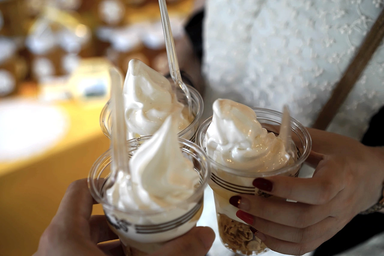 주문하면 요렇게 아이스크림을 주는데 안에 달콤한 꿀이 들어있습니다. 안 그래도 달달한 아이스크림인데 거기에 꿀까지 들어가 있으니 단 것 좋아하는 분은 강추합니다!