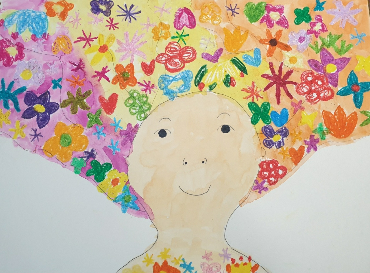 에바 앨머슨의 <활짝 핀 꽃>을 보고 딸이 그린 그림-나의 내면에도 이렇듯 꽃이 있을까?