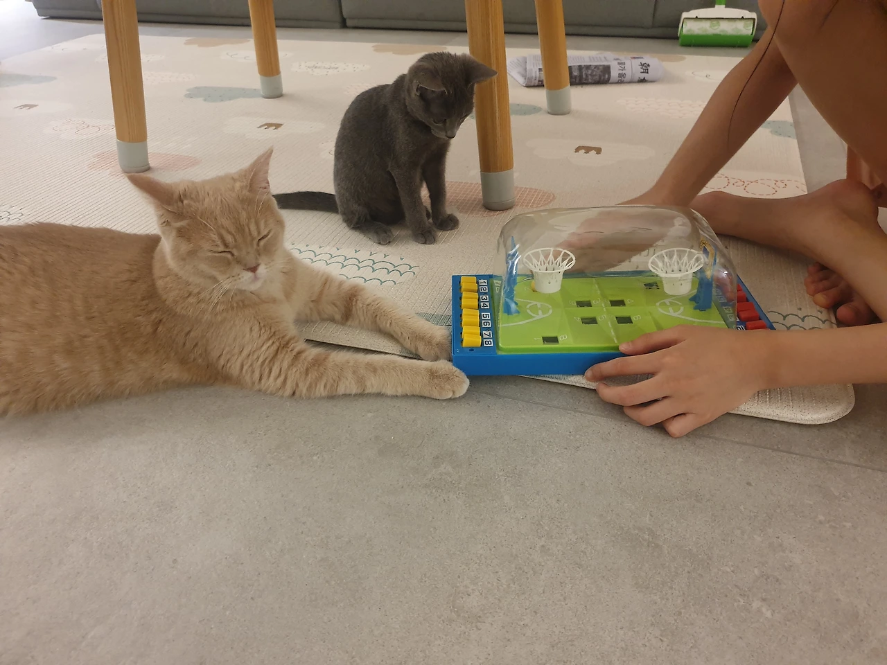 자 저는 고양이학교의 선생님이에요. 오늘은 꾹꾹이 본능을 이용해서 농구게임을 배워볼거에요.