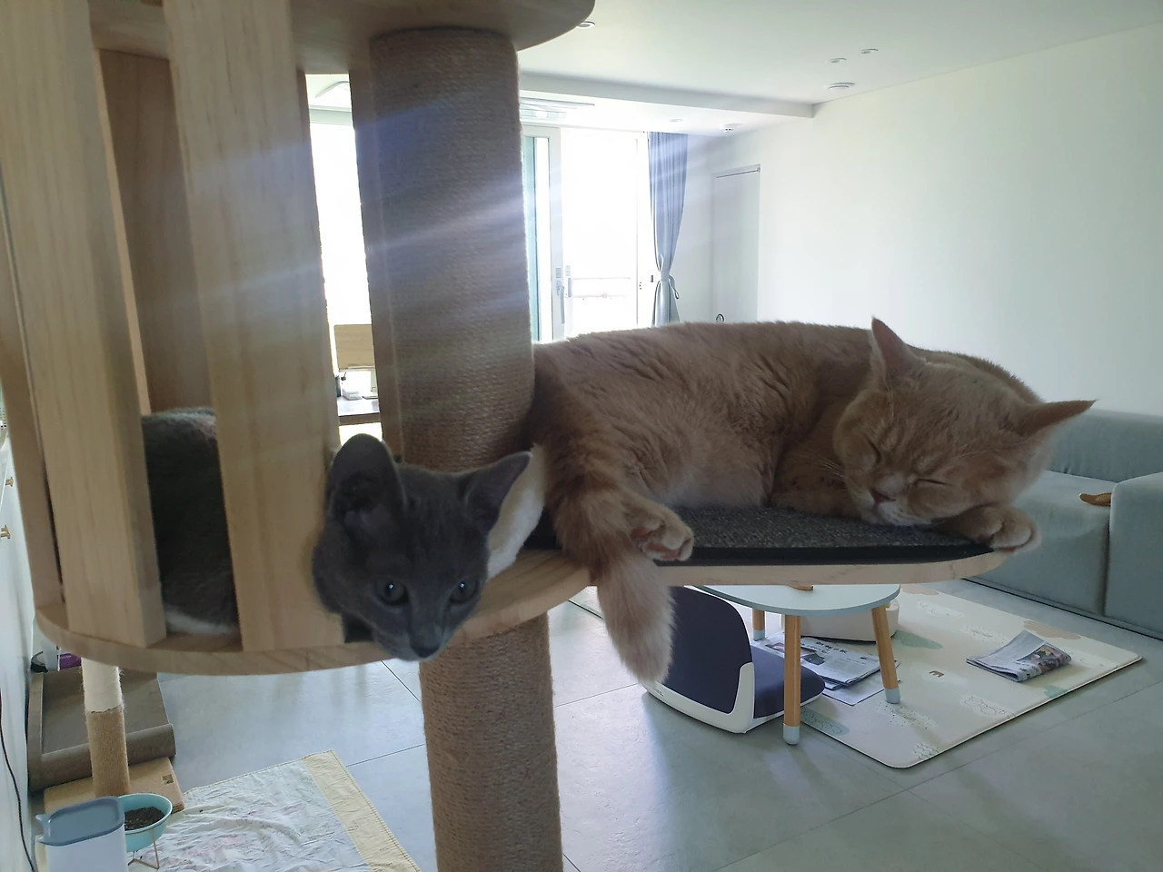 야. 캣타워 좁아. 나 살쪘단 말이야!