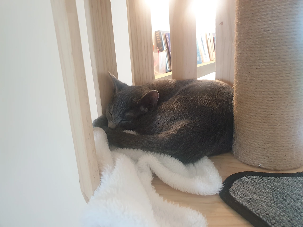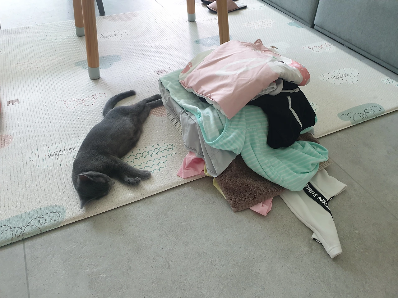 빨래더미 옆에서 자는 걸 좋아합니다.