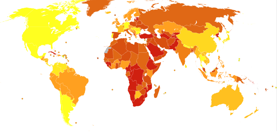 모나리자가 살았던 이탈리아도 이제는 요오드화 소금을 국가정책으로 공급하면서 요오드 결핍에서 벗어나고 있습니다. 그런데 지구상의 딱 한 곳, WHO의 정책이 닿지 못하는 곳이 가까이 있습니다. 바로 북한입니다. WHO의 요오드 결핍으로 인한 장애 손실 수명 지도를 확대해 보면 한반도의 허리를 기준으로 노란색과 빨간색이 명확하게 나뉩니다. 요오드가 부족할수록 빨간색이 되는 지도로, 북한이 빨간색이지요.