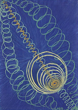 <10 점의 대형 그림>은 자연에서 따온 곡선과 상징, 문자와 기호로 이루어진 추상화 연작으로, 어린 시절부터 노년까지 삶의 단계를 표현한 작품입니다. 클린트는 폭 3미터가 넘는 대형 그림을 바닥에 깔아놓고 그 위에 올라서서 사흘 동안 쉬지 않고 작품을 그렸다고 합니다. 이젤을 놓고 앉아서 그림을 그렸던 당대의 화가들과는 완전히 다른 방법이었습니다.