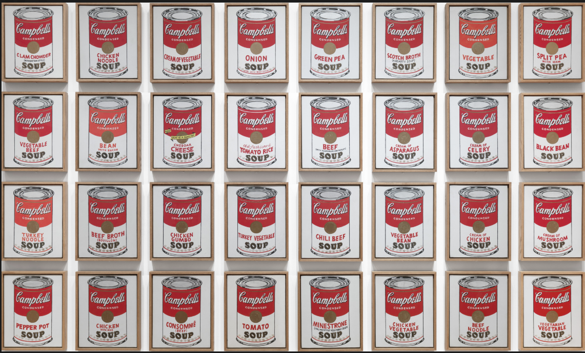 이 작품은 1962년 LA의 페루스 갤러리에서 열린 워홀의 첫 개인전에 출품되었지만 생각보다 큰 반응이 없었고, 100달러에 단 두 점만이 팔렸습니다. 이 전시를 기획했던 어빙 블룸은 팔린 두 점까지 다시 사들여 총 32점을 자신이 구매하고, 1996년까지 소장했다가 뉴욕현대미술관에 약 150억 원에 팔았습니다. 그는 앤디 워홀의 캠벨 수프에 담긴 미술사적 가치를 알아보았고, 원본을 소유하며 끝까지 버텼던 것입니다.