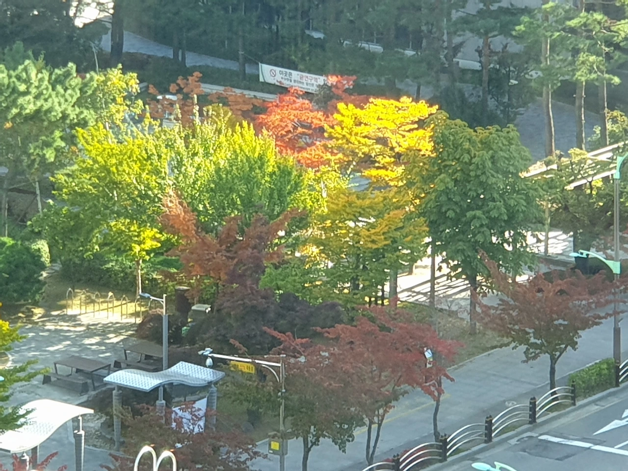 그래서 나에게 휴식은 오늘에야 가능했다. 첫째가 원격수업 중이었지만 걸어서 20분 정도 걸리는 카페에 가서 플랫화이트와 토스트를 사 온다. 커피는 근처에서도 살 수 있지만 일부러 멀리까지 가 본다. 초록과 노랑, 붉은색이 섞여 있는 이 아름다운 가을을 조용히 즐겨 본다.