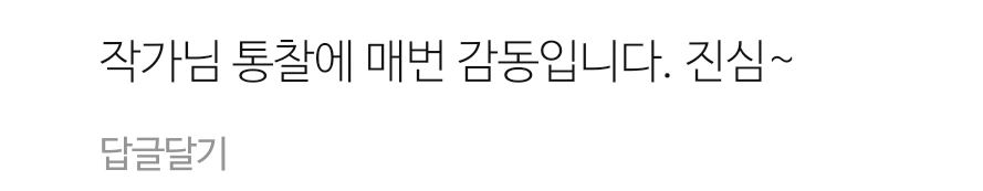소심하게 발행한 글에 통찰이 있다고 말해주시는 작가님이 계셨다. 내가? 에이 설마?라는 생각이 컸지만, 기분은 훨훨 나고 있었다. 그뿐만 아니라 댓글을 글 한 편 분량으로 달아주시는 무시무시한 작문 능력을 보여주신 작가님도 계신다. 글을 읽고 이렇게 풍부하게 느끼시는 분이 있다니 신기하게 느껴지면서도 부러웠다. 나의 메마른 감상 능력을 촉촉하게 키워나가야겠다고 다짐하기도 했다.