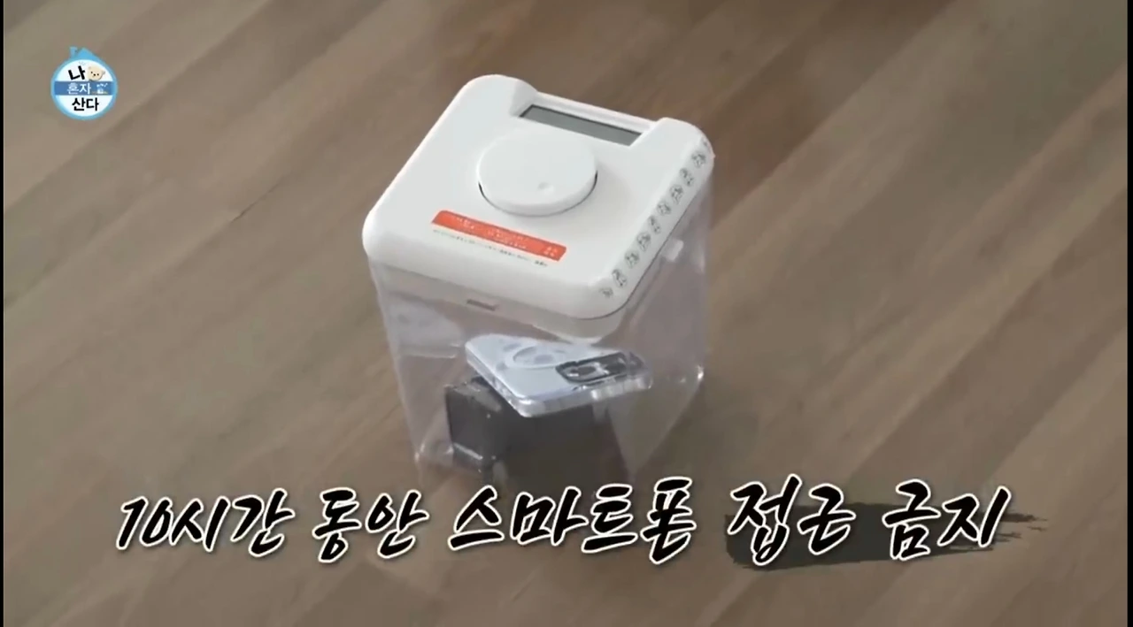 10시간 동안 스마트폰 접근 금지를 위해 금욕상자 속에 스마트폰과 스마트워치를 넣고 잠금 설정한다. 10시간이 지난 후에 자동으로 뚜껑이 열리는 시스템이었다.