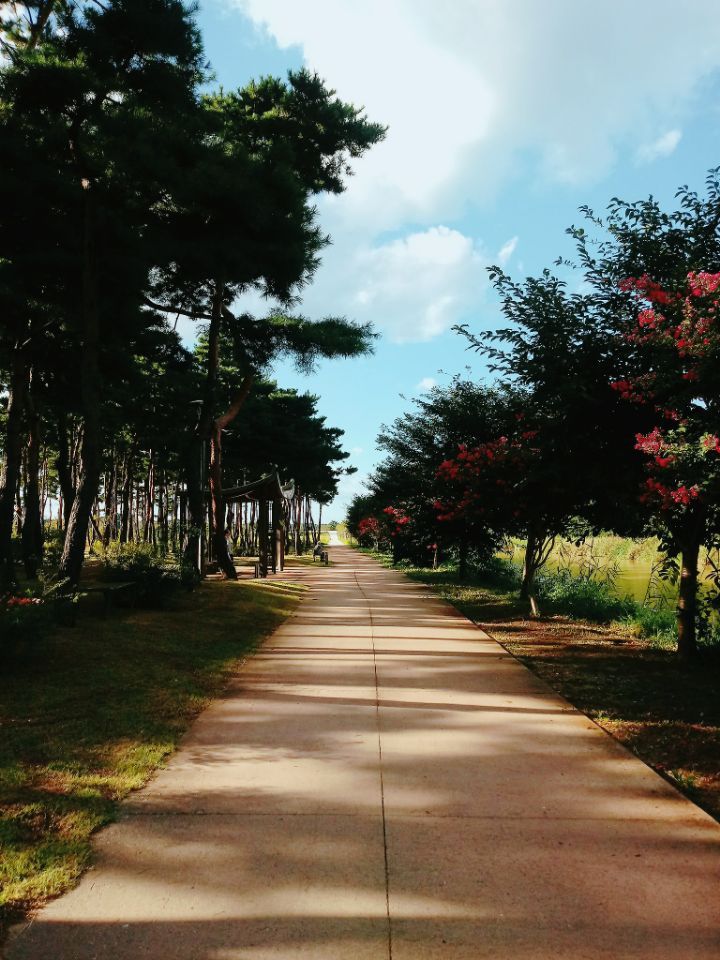 4주 차가 되었다. 물러서지 않을 것 같던 무더운 여름이 가고, 가을이 찾아왔다. 마침 밖에 나와야 하는 날이기도 했다. 가을바람을 느끼고 가을 냄새를 맡을 수 있었다. 하늘도 눈물 나게 예뻤다. 역시 가을 하늘이구나 싶었다. 벤치에 앉아 쭉 뻗은 길을 보는데 바라만 보는 이 길을 온전히 두 발로 걷는 날은 눈물이 날 것만 같았다.