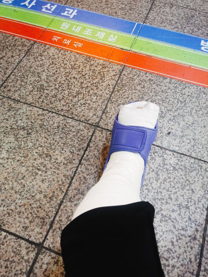 절망적이었다. 넘어졌을 때만 해도 그냥 좀 삐끗한 거겠지 대수롭지 않게 생각했다. 그래도 혹시나 싶어 집이 아닌 병원으로 향했다. 시간은 7시가 넘었기 때문에 응급실로 향할 수밖에 없었다. 그래도 이렇게 두 발로 병원을 왔으니 '인대가 좀 늘어난 걸 거야'라고 생각했지, 금이 갔을 거라고는 상상도 못 하였다. 그렇게 예고치 않은 반깁스 생활이 시작되었다.