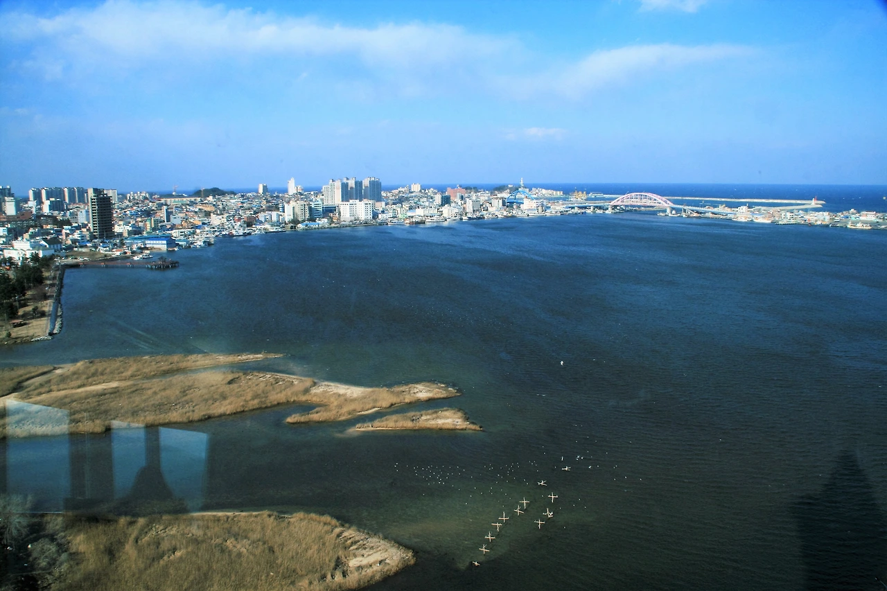 호수에 도착하면 호수가 먼저 눈에 들어오는데 청초호는 그렇지 않았다. 우뚝 선 타워가 먼저 눈에 들어왔다. 엑스포타워다. 1999년 9월 이곳에서 강원국제관광엑스포가 열렸다. 이를 기념하기 위해 세운 것이다. 높이는 약 74m. 이곳에 오르니 청초호가 한눈에 들어온다. 호수와 바다의 경계가 더 모호해진다. 속초 시내는 물론 설악산도 보인다. 안내표지판에 맞춰 울산바위, 대청봉, 달마봉의 위치도 짚어본다.