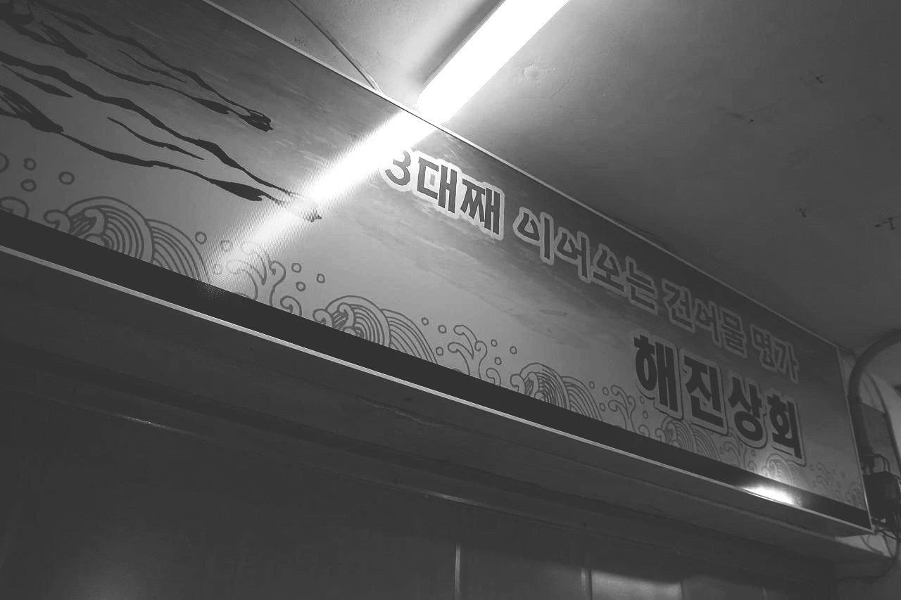 오랜만에 맛본 지누아리. 바다향 가득 입안에 퍼진다. 며칠 뒤, 초코 님과 무무 님과 함께 셋이서 그 상점을 찾아 나섰다. 해진상회라는 상호명 하나만 아는 게 전부였다. 정확한 위치는 모른 채 시장으로 들어섰다. 그 많은 가게 중에 어떻게 찾아야 하나 내심 걱정했는데 시력 좋은 무무 님 덕분에 금세 찾을 수 있었다. 웬 젊은 사람들이 이렇게 들어오나 경계의 눈초리로 보셨다가 오솔길 식당 사장님이 알려주셨다고 하니 금세 경계심을 푼다. 아버지의 대를 이어 건어물 가게를 하고 계신 최일용 선생님.