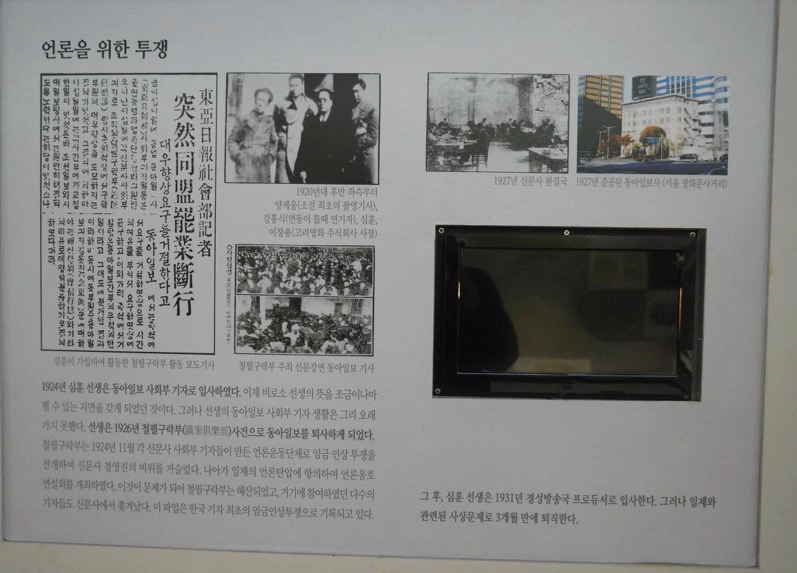 심훈기념관이 건립되기까지 꽤 오랜 시간이 걸렸다. 이를 누구보다 절실히 기다렸던 사람이 있다. 심재호 선생이다. 그는 심훈 선생의 셋째 아들이다. 심훈 선생이 타계하기 다섯 달 전 이곳 필경사에서 태어났다. 그의 기억 속에 살아있는 아버지의 모습은 없다. 하지만 그는 살아가면서 아버지의 삶을 더듬어갔다. 전국을 돌며 아버지의 유품을 모으고, 자료를 수집하여 심훈전집을 완성했다.