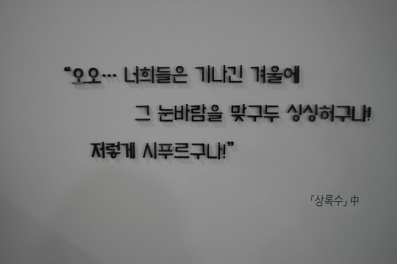 필경사를 돌아보기 전 심훈기념관부터 관람하기로 한다. 책을 펼쳐 든 심훈 선생의 동상이 서 있다. 그 옆에 새겨진 시 <그날이 오면>을 오랜만에 읊조려 본다. 전시공간은 심훈 선생의 삶을 기승전결의 흐름으로 구성하였다. 그는 짧은 생애를 살았지만 독립운동가, 시인, 기자, 방송국 프로듀서, 영화감독, 소설가에 이르기까지 누구보다 뜨겁게 살았다. 민족에 대한 사랑과 독립에 대한 열망을 고스란히 느낄 수 있었다.