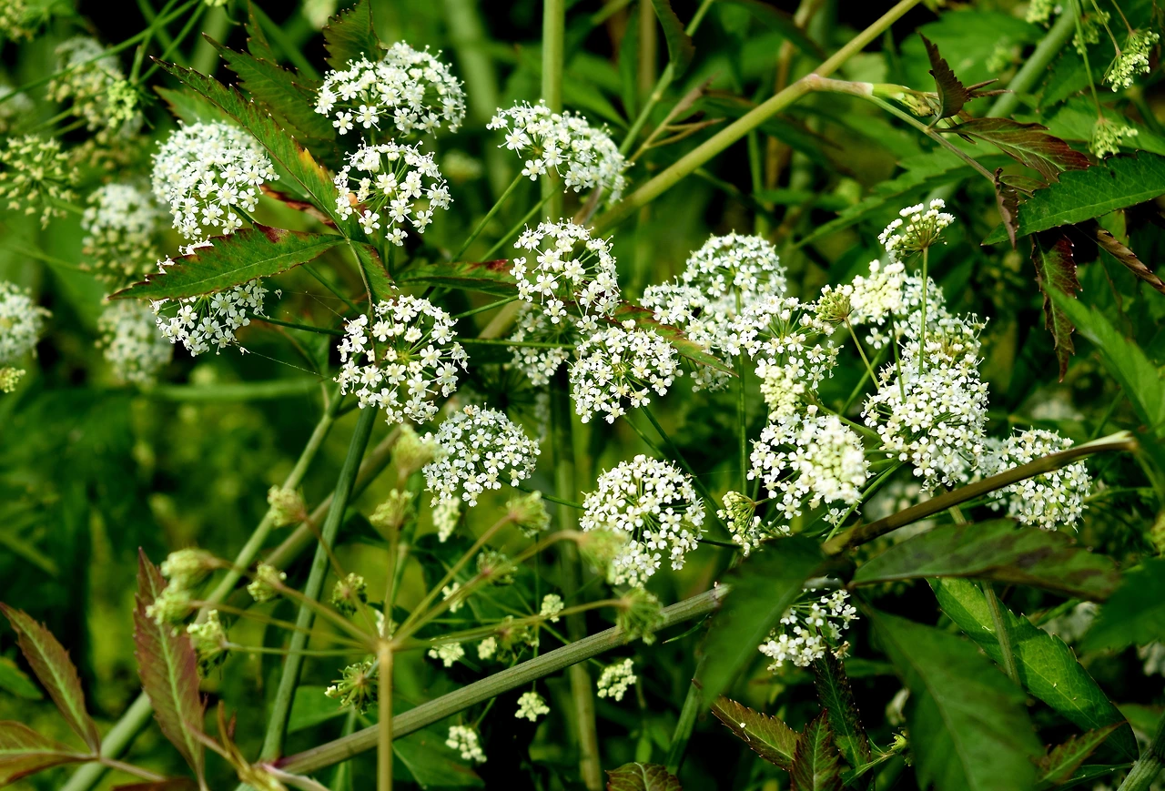 [선조들은 부들을 엮어 왕골자리 대용으로 썼다고 한다.(왼쪽)/ 멸종위기 2급 식물인 독미나리. 6~8월에 하얀 꽃이 핀다. 절대 만지지 말 것.(오른쪽)-고종환 제공]