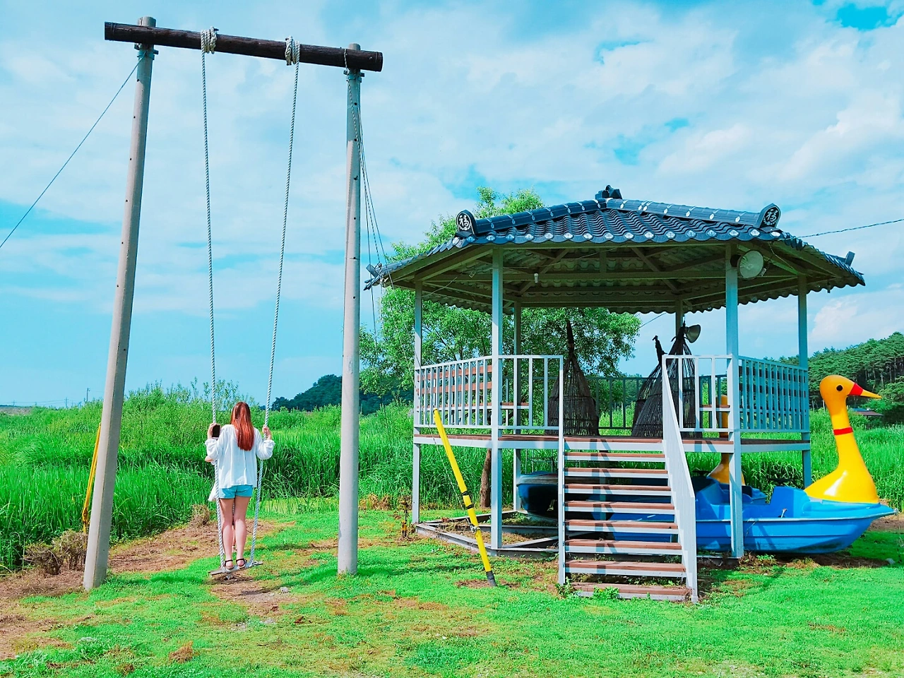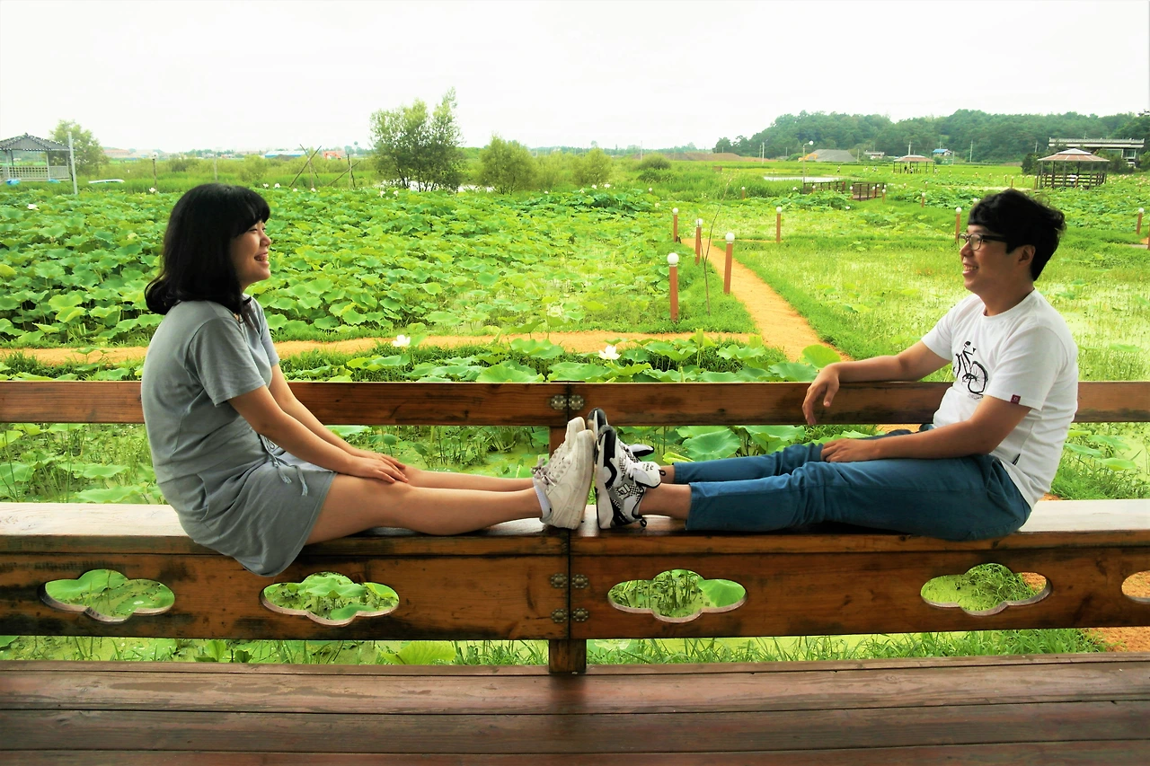 4. 사진 예쁘게 나오는 포인트 : 1. 연꽃단지 초입에 있는 정자에 앉아 찍기. 뒤에 연꽃단지 배경이 굿! / 2. 박 터널 가운데 서서 찰칵! / 3. 갯배 타고 습지 중반쯤에서 서로 찍어주기 / 4. 그네 타는 모습 찰칵!