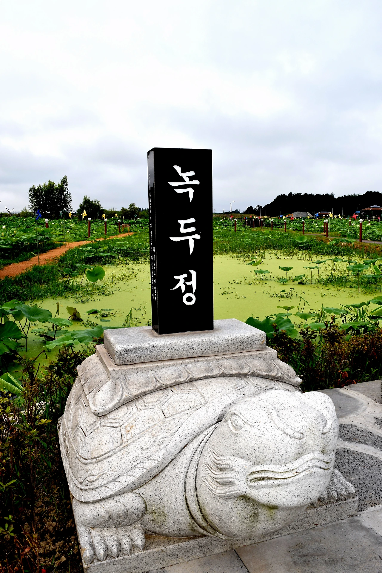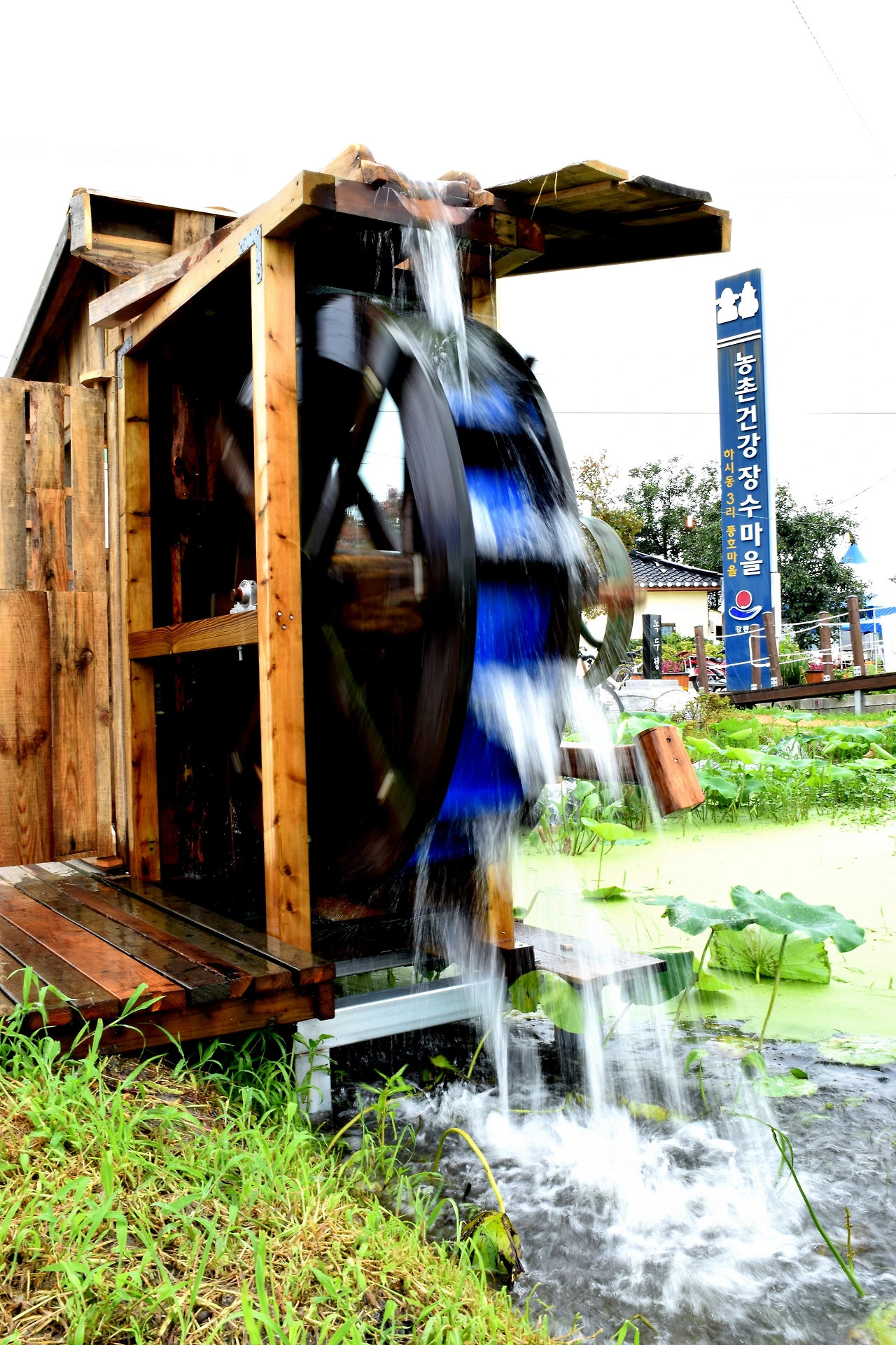 [물레방아가 돌아가듯, 올해 축제도 원활하게 잘 되었으면 좋겠다.(왼쪽)/ 우리나라의 가장 오래된 차 유적지 중 하나인 녹두정(한송정).인근 공군 제18전투비행단 안에 정각이 있다. 마을에선 이를 기억하고자 기념비를 만들었다.(오른쪽)-고종환 제공]