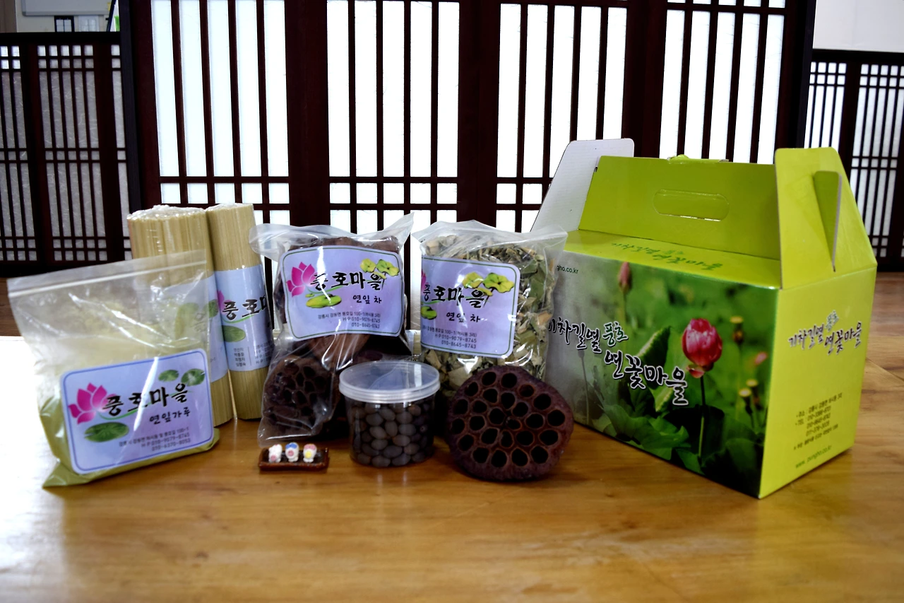 [축제 준비를 지켜보는 제비들 포착! (왼쪽)/ 다이어트 고민이라면? 변비 때문에 고생이라면? 연잎차, 연국수, 연잎가루 등의 지역특산물을 놓치지 말길.(오른쪽)-고종환 제공]