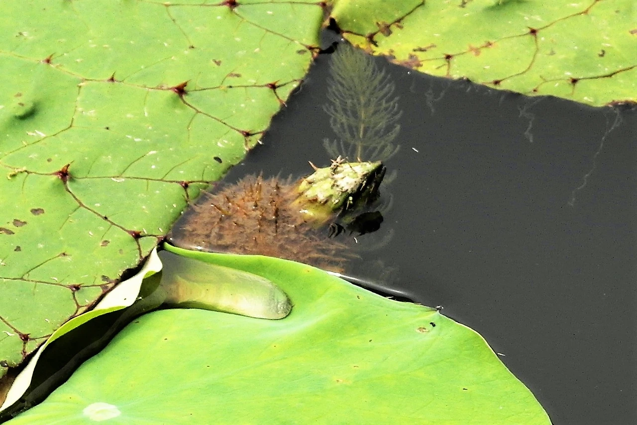 가시연이 피어난 습지로 향하는 중, 배가 제법 통통한 가시연을 발견했다. 곧 피어날 준비를 하는 건가 싶었는데 아니었다. 2주 전쯤 나타난 것인데 조건이 맞지 않아 꽃은 피지 않은 채 씨앗이 생긴 것이라고 한다. 어떻게 꽃이 피지 않았는데 씨앗이 생긴 걸까. 가시연은 폐쇄화다. 자가수분해서 스스로 종자를 만들 수 있는 것이다.