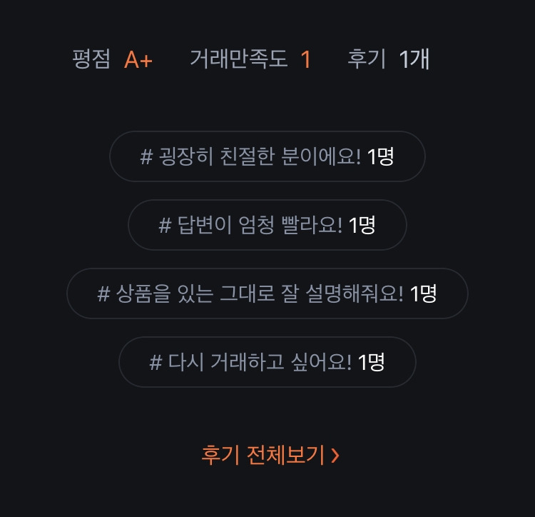 거래 평가 부탁하고 다음날 오전 확인해 보니 기분 좋은 평가가 날아왔다.