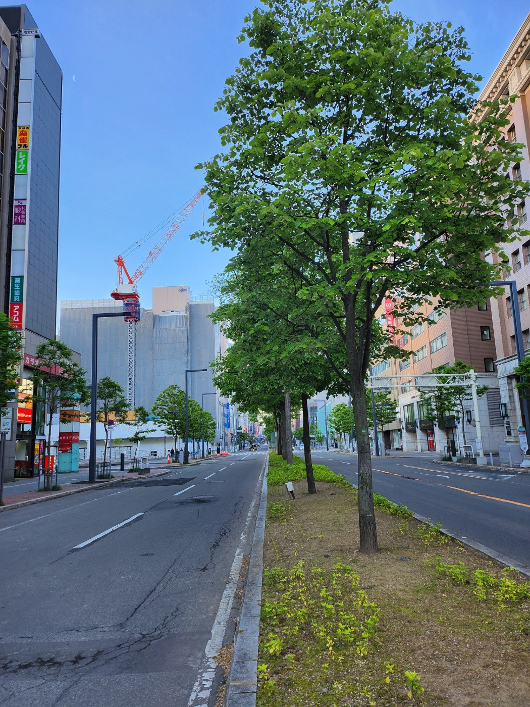 새벽 시간의 삿포로시내는 도로에 차가 없어 한적했다. 새벽 고요한 도로를 보면, 낮에 도시가 얼마나 생동감이 느끼는지 실감하게 된다.
