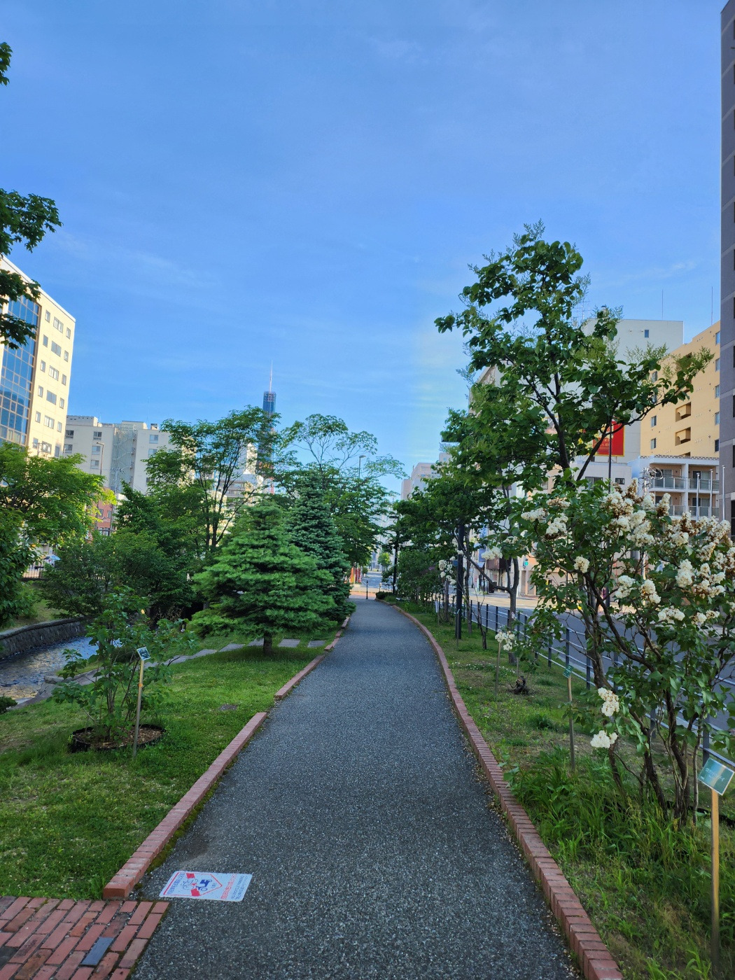 삿포로시에서 특이했던 것은 도요히라강 서쪽으로 1km 남짓 거리에 소세이가와강이라는 작은 강이 있었다. 그 작은 강을 중심으로 작은 공원이 남북으로 길게 형성되어 있었다. 니조 시장도 문을 안 열었는데, 그 옆에 있는 소세이가와강변 공원을 따라 달렸다. 역시 도로보다는 공원을 따라 달리면 괜히 마음이 편해진다.