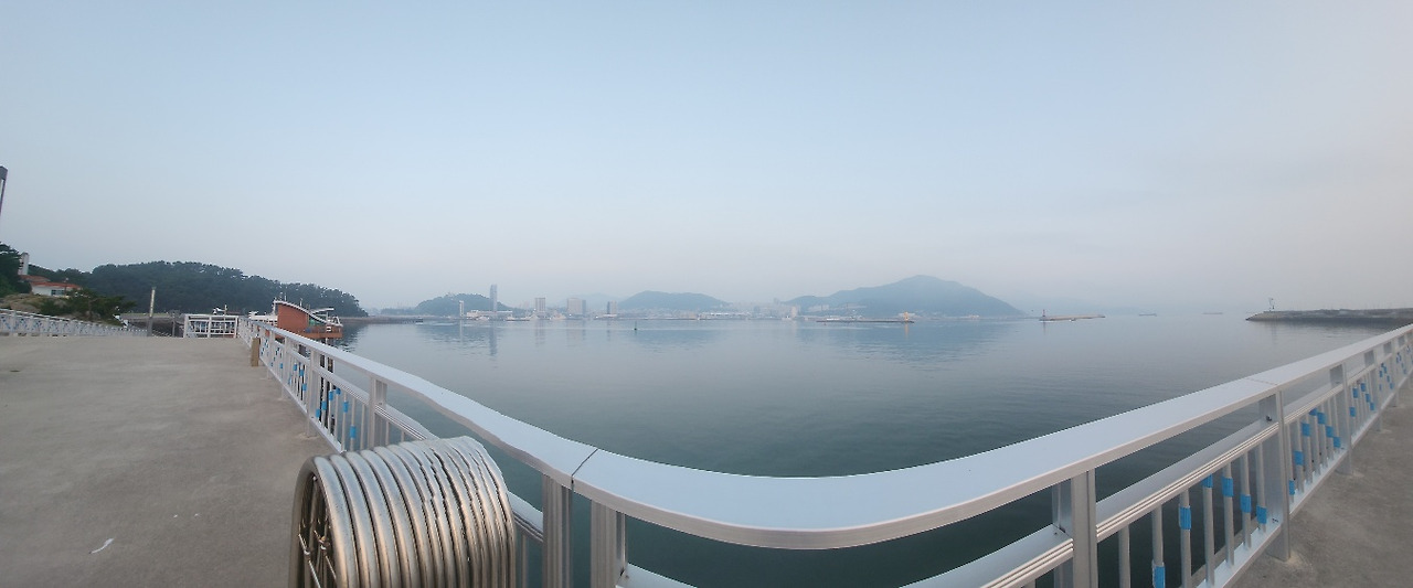 새벽 6시 즈음 여수 오동도 방파제의 전경을 파노라마 버전으로 촬영했다.