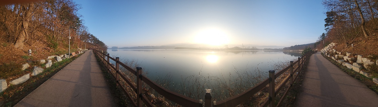 새벽 6시 즈음 경주 보문호수의 전경을 파노라마 버전으로 촬영했다.
