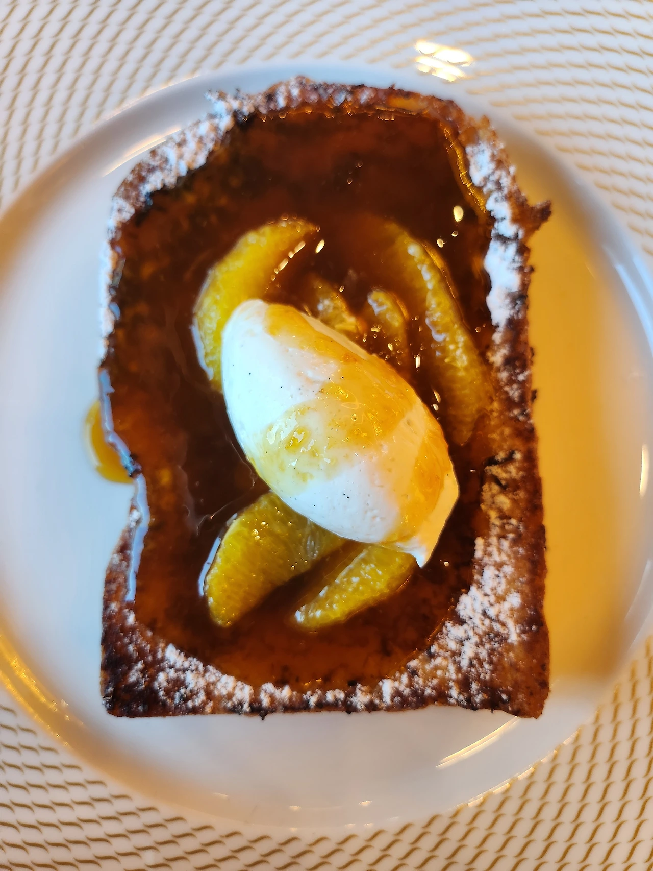 고든 램지의 프렌치토스트. 오른쪽은 시럽을 뿌린 후 모습 전체적으로 고든 램지에서 맛본 요리들은 생각보다는 자극적이지 않았다. 강한 맛과 향을 기대하고 먹었지만, 의외로 간간하고 절제된 맛이었다. 하지만 그 약한 맛이 혀끝에 남아서 그 느낌이 오래 유지됐다.