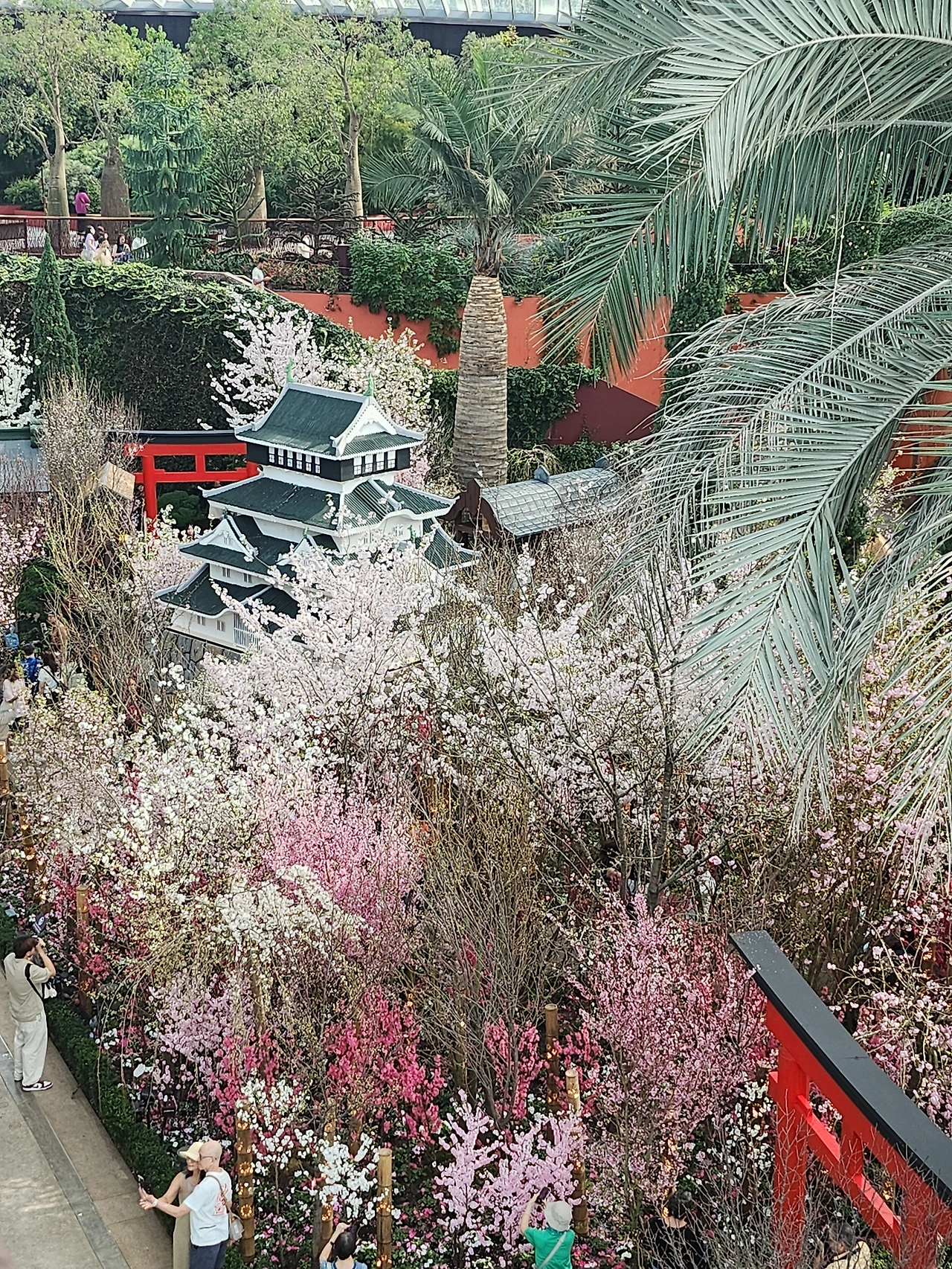 클라우드 마운틴 정상에 엘리베이터를 타고 올라서 정상에서부터 난 길을 따라 산을 돌면서 곳곳의 식물을 감상하면 된다. 그렇다고 단순히 식물들만 모아놓은 것이 아니다. 곳곳에 눈길을 끄는 장식들이 있다. 2월에는 클라우드 모네의 수련 작품들의 디지털 전시회가 열렸는데, 식물원 분위기와 너무 잘 어울려 장관이었다고 한다. 아쉽게도 3월 초에 전시가 끝났다.