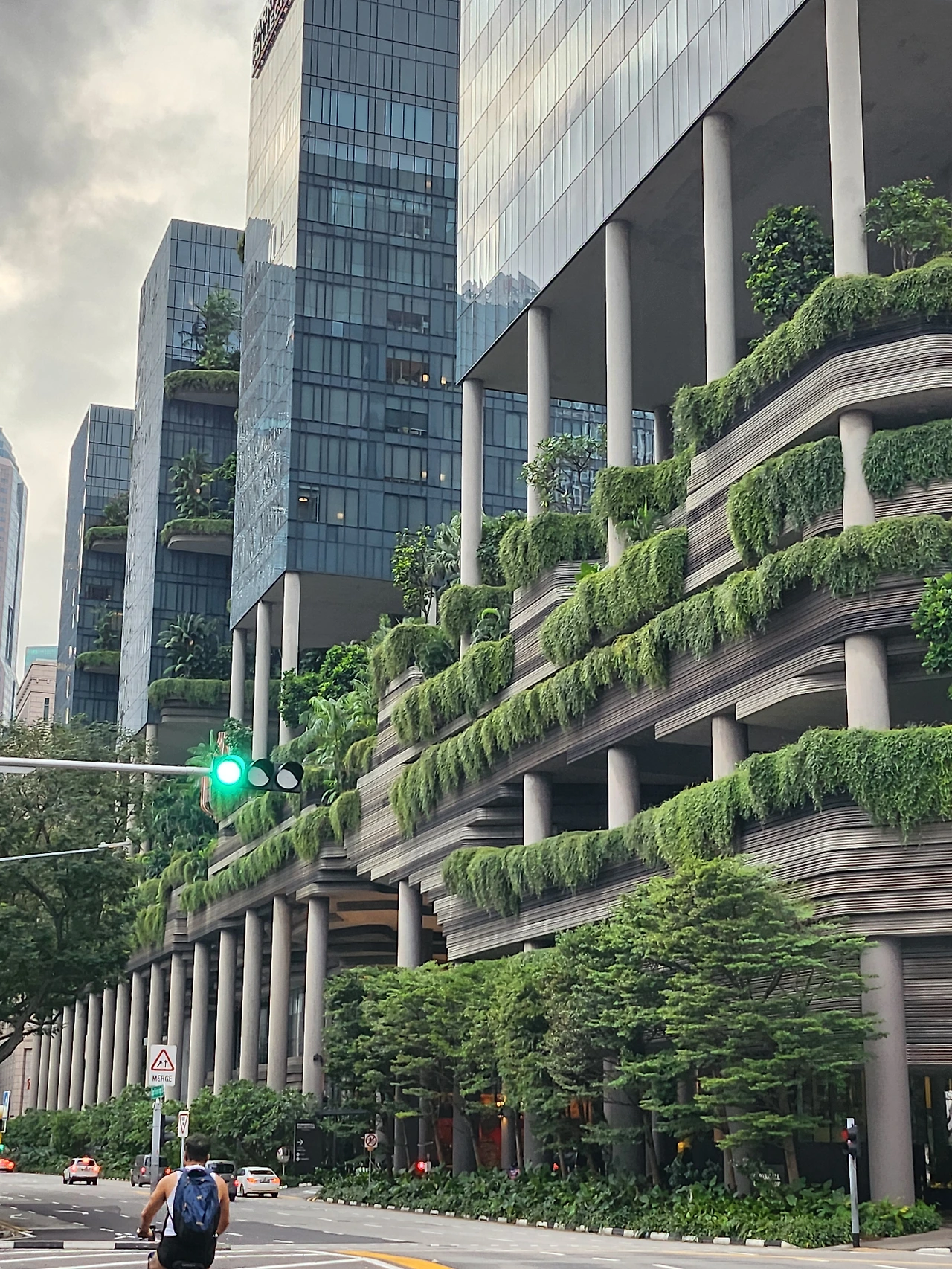 그리고 도시가 개성이 있다. 이번에 모시고 간 상사는 싱가포르에 자주 왔는데, 이곳에서 종종 영감을 얻는다고 했다. 겪어보니 그 말이 이해가 갔다. 싱가포르 다운타운에 들어서는 순간 그 다양함에 눈이 바빠졌다. 다운타운을 가득 매운 건물들이 제각각 개성을 뽐내고 있었다. 가장 인상적이었던 건물은 층마다 녹지가 조성되어 있는 빌딩이었다. 친환경 콘셉트의 건물이지만 멀리서 보면 미래 영화에서 나오는 황폐화된 도시 건물에 이끼가 잔뜩 낀 폐 건물처럼 보였다. 나중에 찾아보니 '파크로열 컬렉션 피커링(Parkroyal Collection Pickering)' 호텔이었다. 어쩐지 디자인이 예사롭지 않더라니만.