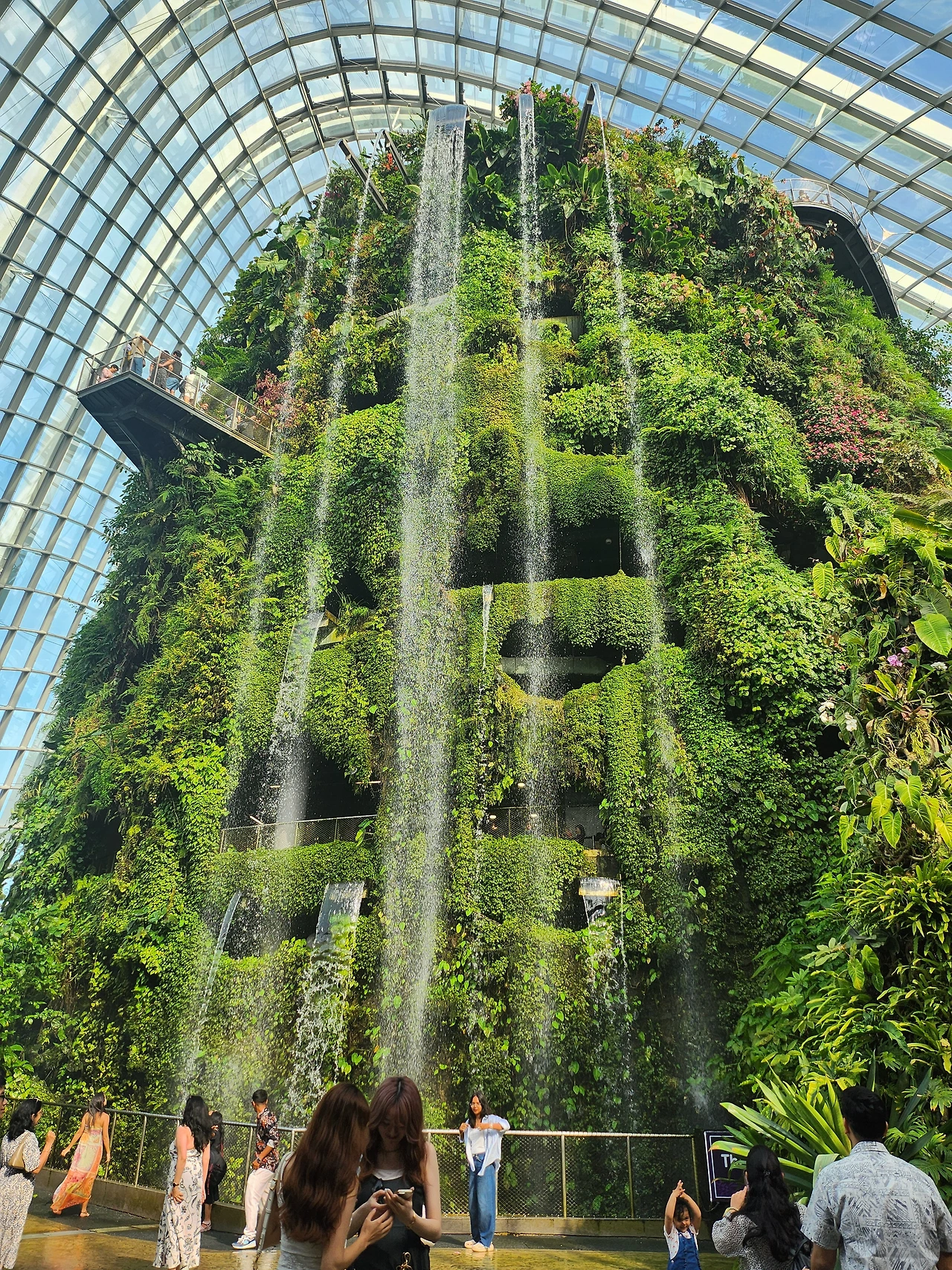 클라우드 포레스트 한가운데는 거대한 산처럼 만들어 놓은 클라우드 마운틴이 있는데 이 산을 따라 난초, 양치류, 고시라, 국화 등 다양한 열대 식물들이 자라고 있다. 그리고 세계에서 두 번째로 큰 실내 폭포인 클라우드 파운틴이 있다. 폭포를 보기만 해도 시원하다. 마치 열대 우림 속에 들어선 기분이 든다.