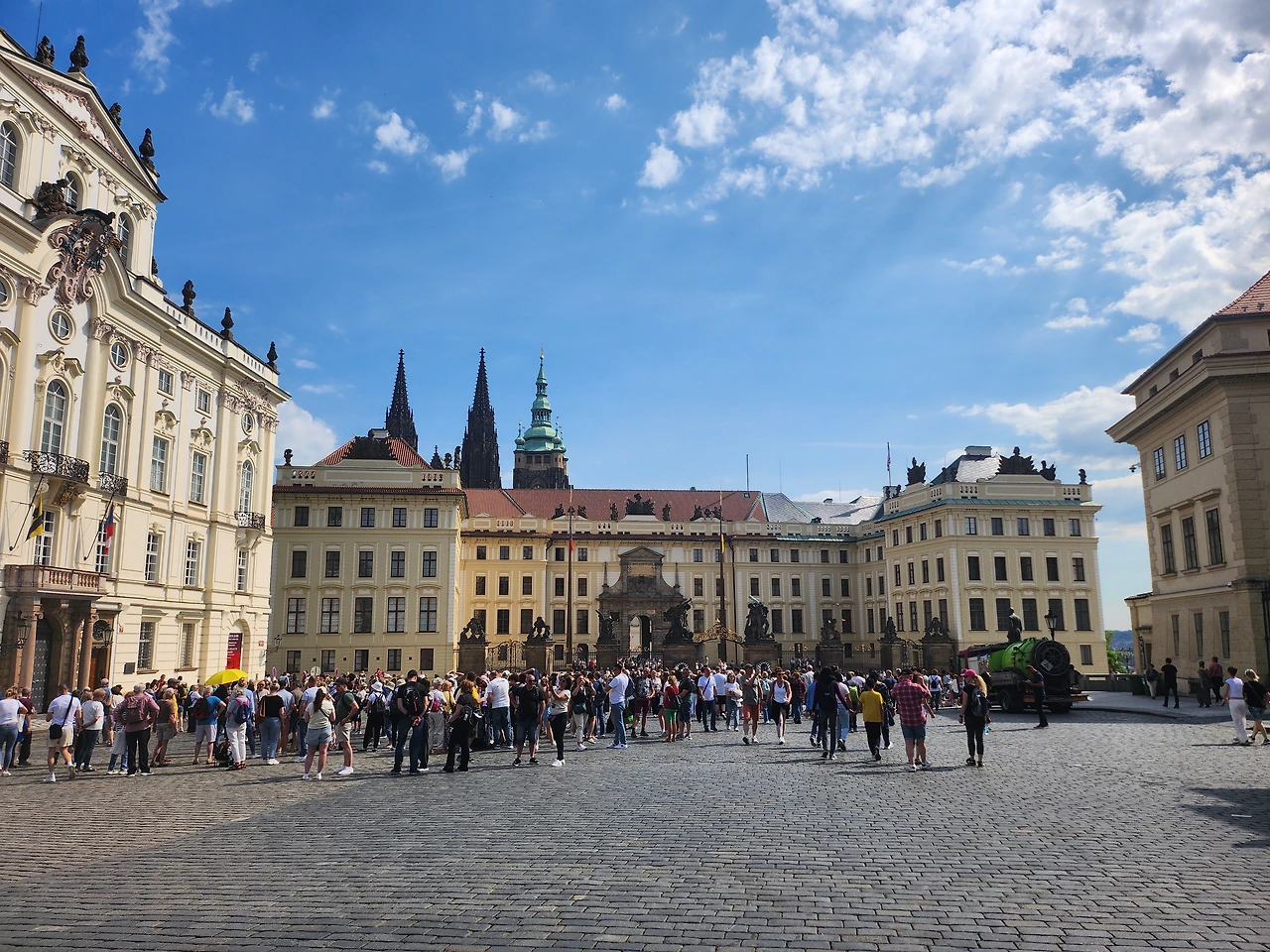 카를교를 건너 길을 따라 레서 타운 브리지 타워를 지나 쭉 올라가면 프라하 성 문과 흐라드찬스케 광장(Hradcanske Namesti)이 나온다. 같은 광장이지만 구시가지 광장과는 주변이 엄숙한 느낌의 건물들로 둘러 쌓여 사뭇 다른 귀족의 느낌이 물씬 풍기는 광장이다. 프라하성으로 가는 길은 언덕길이다. 프라하성도 외세의 침략 시 방어에 유리하게 얕은 산 위에 위치해 있다.