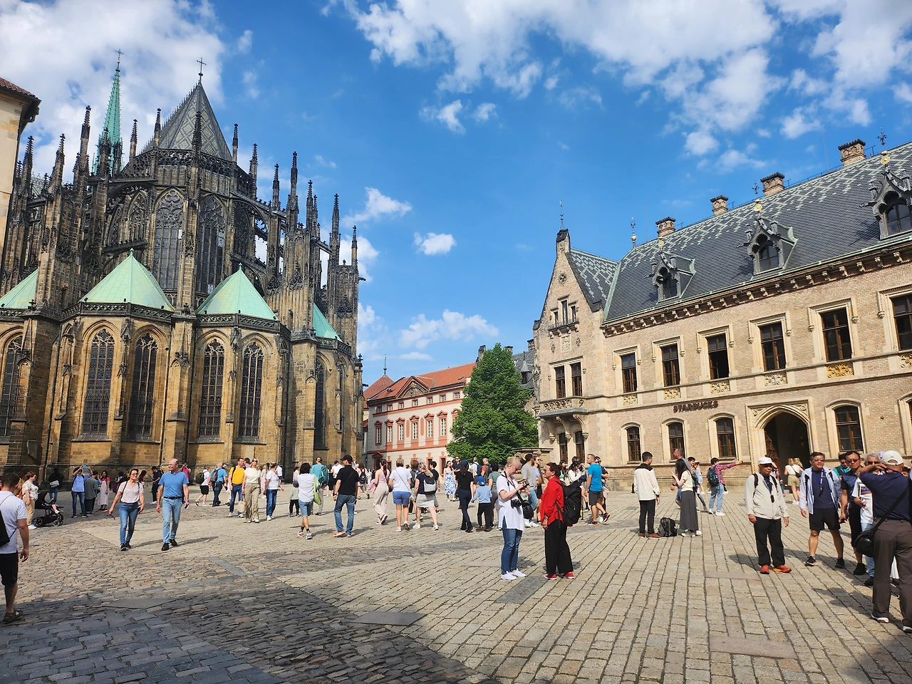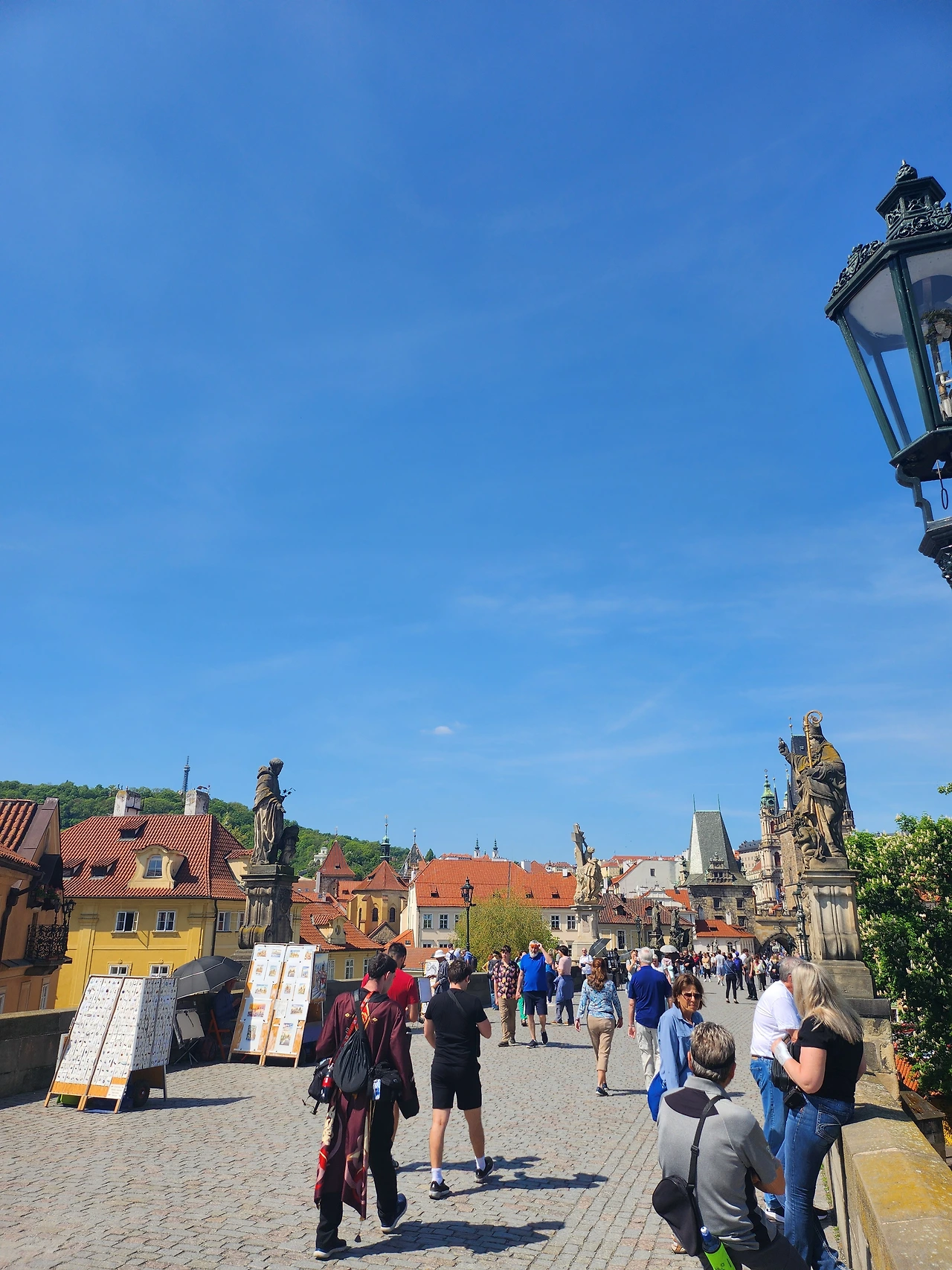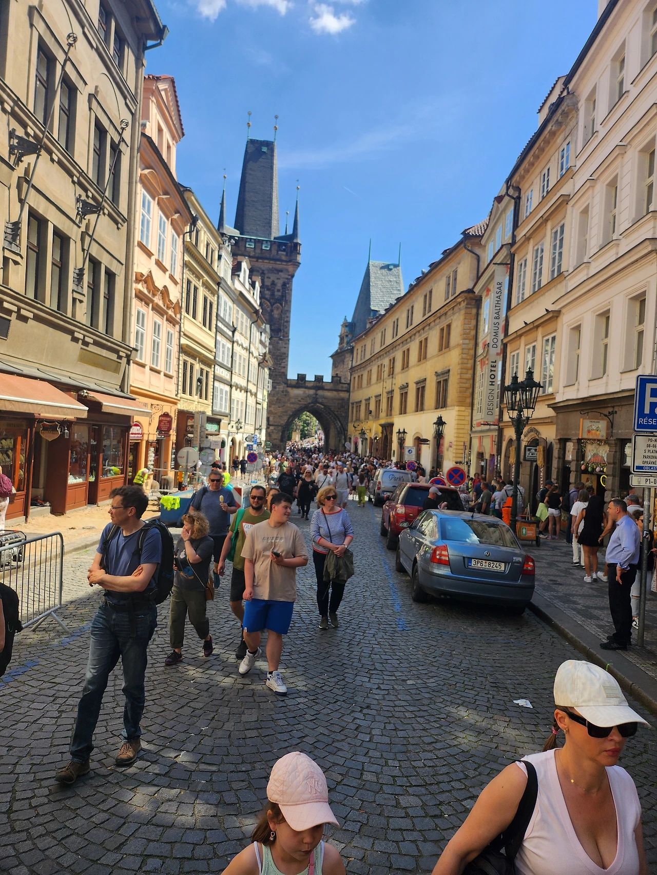 직사각형 검은 돌들이 마치 테트리스 블록처럼 지그재그로 깔려 눈앞으로 쭉 이어졌다. 인도는 작은 돌들로, 차도는 큰 돌들로 이뤄져 있었지만, 워낙 관광객들이 걸어 다니는 도시라 차가 드물었다. 혹여나 차들이 프라하 시내에 들어와도 관광객 인파들로 인한 체증이 심할 것 같았다.