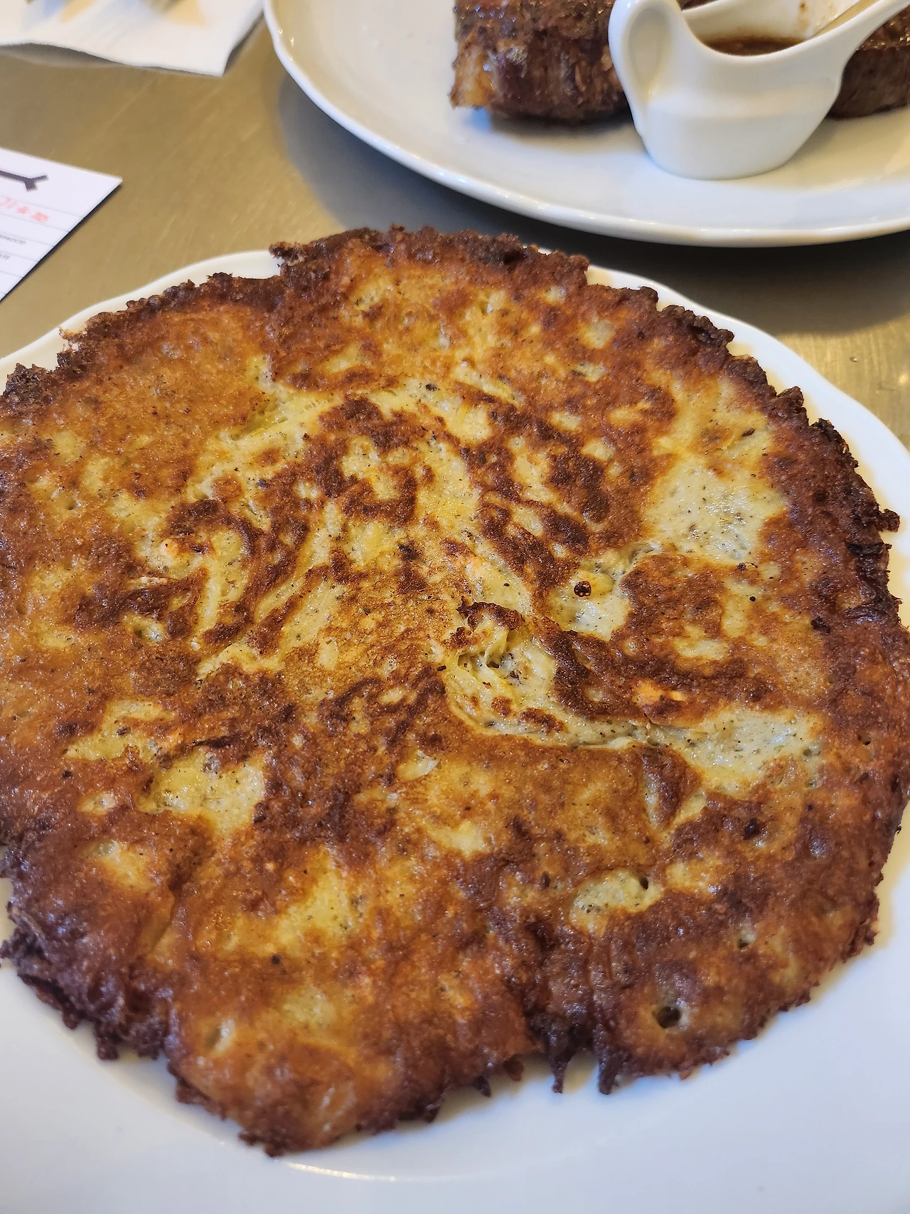 남자 손바닥만 한 미디엄 스테이크가 나왔다. 잘 썰어서 입에 넣었다. 잘 구워진 고기 표면에 소금 간이 잘 배어 있었다. 고기를 베어무니 안에 익지 않은 야들 야들한 부분에서 육즙이 흘러나오며 조화를 이뤘다. 사실 고기가 메인이어서 함께 나온 일명 감자전은 짭짤했던 기억만 남았다. 아무래도 미디엄 웰던으로 주문했어야 하나 했다. 한참 먹다 보니 느끼하고 배불러 아깝게 미처 다 못 먹고 일어섰다. 소고기를 남기고 자리에서 일어나다니. 차마 발걸음이 떨어지지 않았다. 아까워라.