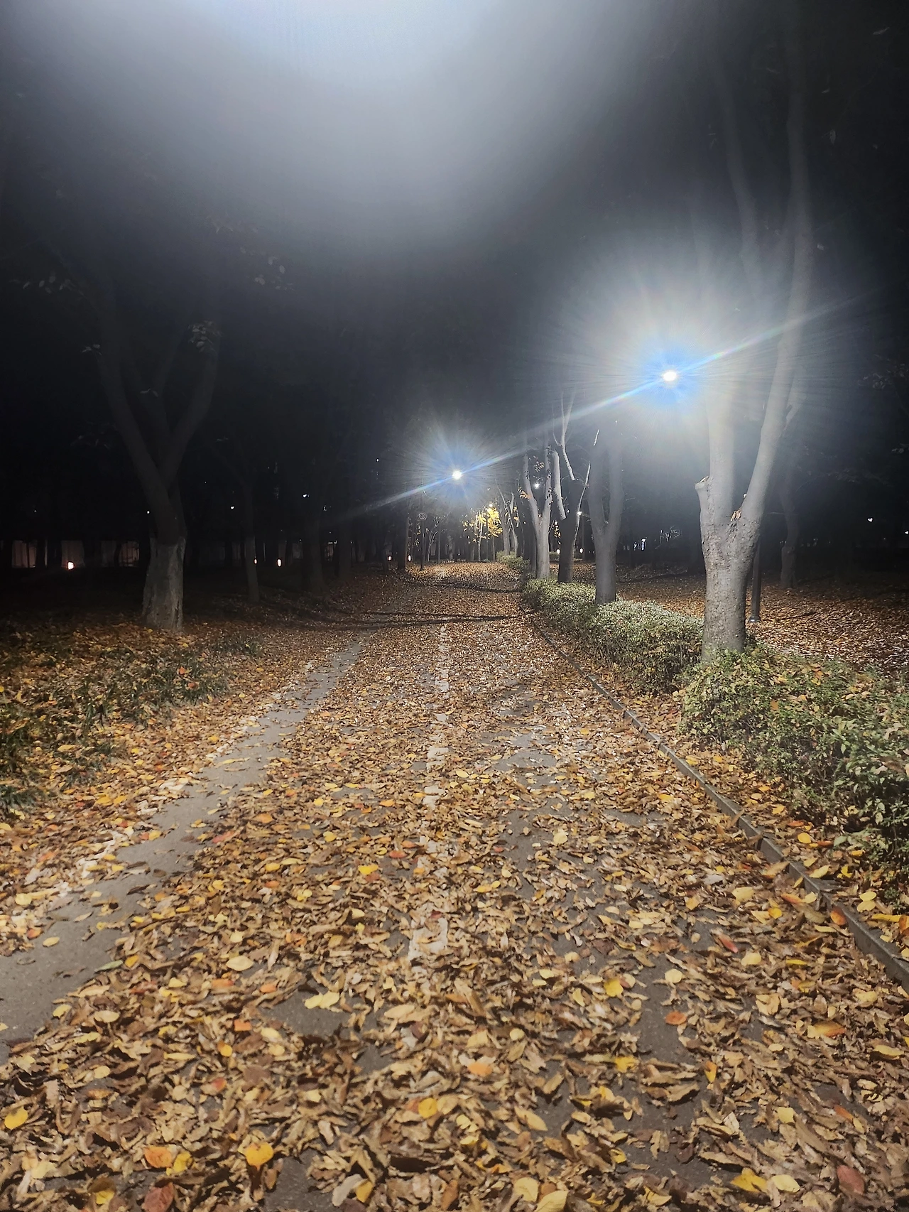 그리고 호수교를 지나 자전거 도로 왼쪽에 난 길을 따라가면 메타세쿼이아길이 나온다. 같은 호수공원 내 있는 길인데 분위기가 정말 다르다. 흙길 양 옆으로 높은 나무들이 길게 늘어서 있다. 완벽한 숲길이다. 밤이 되면 이용객들을 위해 길 따라 조명등들이 길게 늘어서 있다. 한 여름 파란 나뭇잎이 숲길을 가득 메우는 왠지 마음이 편해지는 곳이다. 메타세쿼이아길 중간 조명등을 스폿으로 정했다.