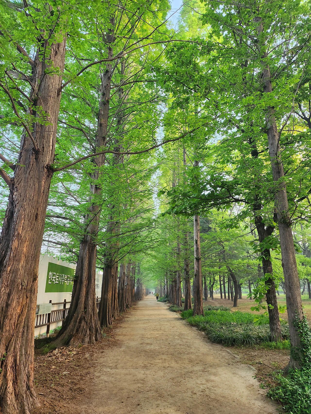네 번째 스폿인 메타세쿼이아길. 끝이 보이지 않는 초록의 청량함에 취한다.