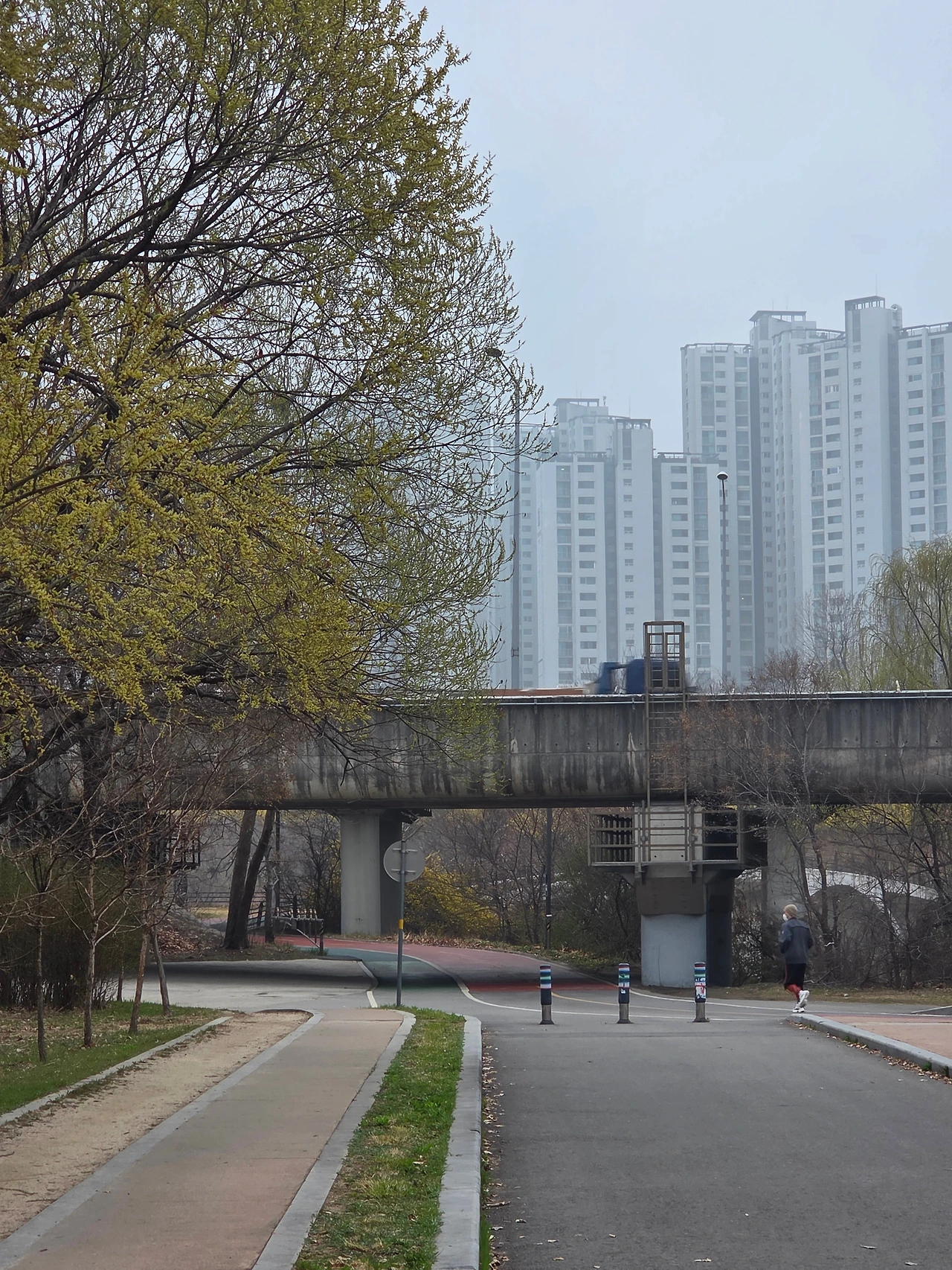 내 기억에 명일역에서 처음 달리러 나간 곳이 구리암사대교였다. 명일역에서 북쪽으로 쭉 올라가면 한강을 가로지르는 구리암사대교가 나온다. 예전에 명일동을 오가면서 구리암사대교 한편에 인도가 있는 것을 기억했기 때문, 달려서 다리를 건널 수 있을 것이라 생각했다. 일단 무작정 구리암사대교 방향을 향해 달렸다.