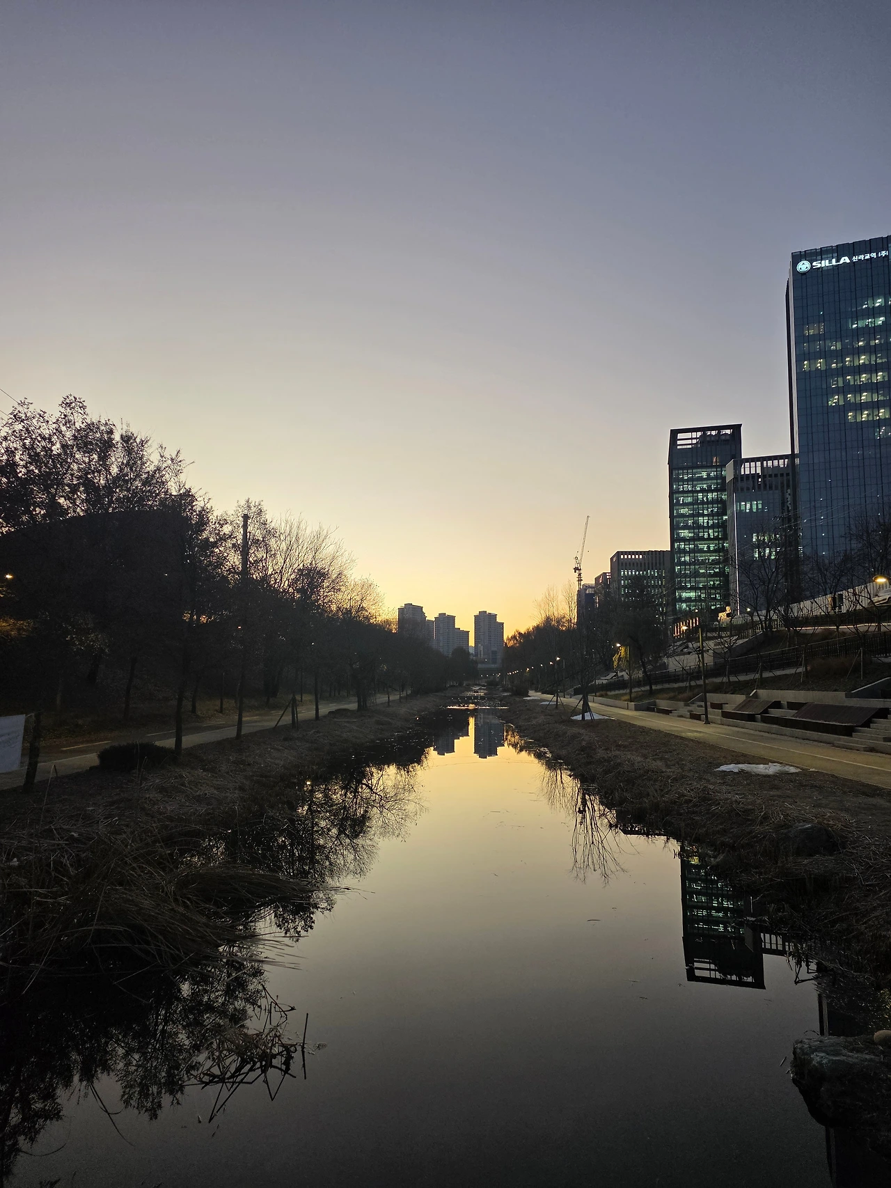 최근 코스는 토끼굴에서 서쪽으로 쭉 달리는 것이다. 광진교를 지나, 천호대교를 지나고 현대아산병원 단지와 올림픽 대교를 지나면 성내천으로 빠지는 길이 나온다. 이제는 강과 천의 차이를 알 것 같다. 한강에도 내륙으로 연결되는 천들이 곳곳에 있어 천들을 따라 산책코스가 형성되어 있다. 성내천 길은 올림픽공원으로 연결되어 있다. 성내천을 따라 달리면 올림픽공원 경계를 따라 달리게 된다. 올림픽공원 입구에서 5호선 둔촌역을 지나고 길동, 굽은 다리역을 지나면 명일역이다. 5호선은 강동역에서 마천행과 하남미사 방향으로 나뉜다. 올림픽공원역과 둔촌역은 마천행 방면이고, 길동역과 굽은다리역, 명일역은 하남미사 방면이다. 그 말은 올림픽공원에서 힘들다고 5호선을 타면 강동역까지 가서 다시 갈아타야 하는 번거로움이 생긴다. 그렇다고 길동역까지 가서 타자니 2 정거장인데 아까워서 그냥 달리게 된다. 그렇게 달려 명일역에 도착하면 거리가 약 12km가 나왔다.