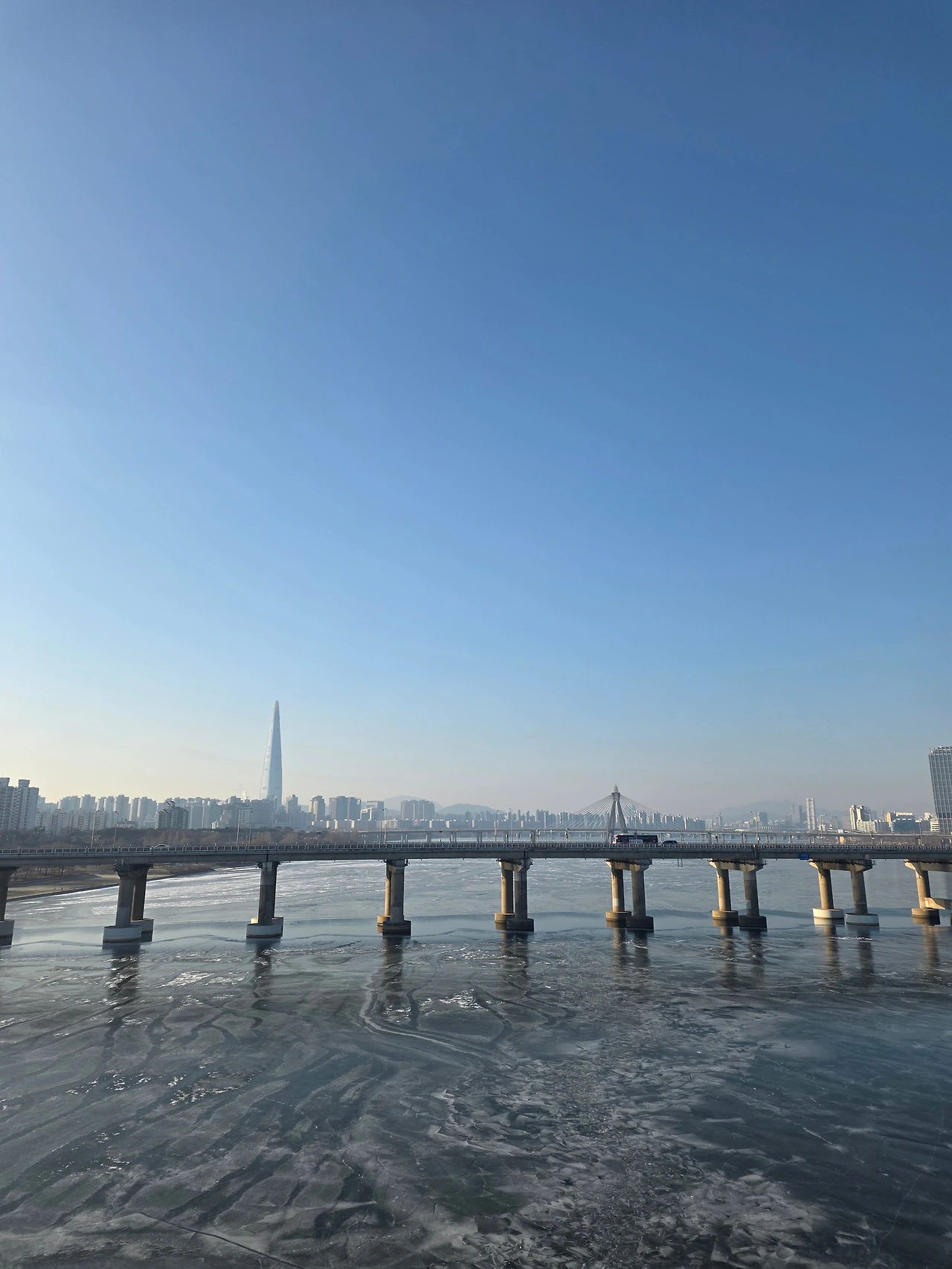 * 사진설명: 광진교 위에서 구리암사대교 방향으로 바라본 눈 덮인 한강