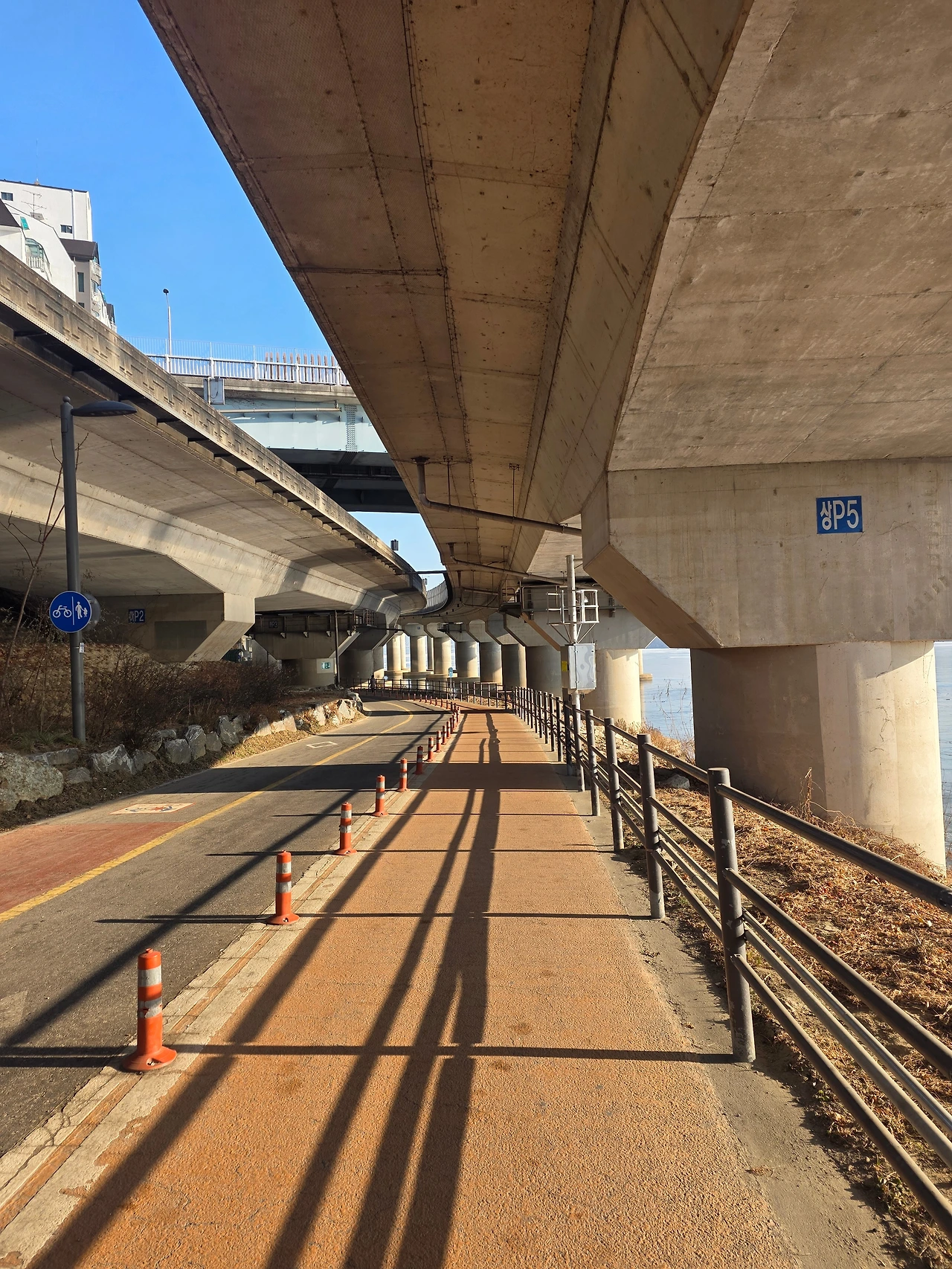 래미안솔베뉴 단지를 지나 강동롯데캐슬퍼스트를 따라 쭉 달렸다. 주택가만 지나면 구리암사대교가 나올 줄 알았다. 이건 웬걸 비닐하우스가 있는 공터가 있는 암사3동이 나왔다. 그렇게 암사3동을 지나니 구리암사대교가 나왔다. 다리 길이는 약 1km 정도 되는 듯했다. 겨울이라 마스크를 하고 비니 모자를 써서 얼굴을 가렸지만 찬 강바람에 눈이 시릴 정도였다. 그렇게 구리암사대교 끝을 찍고 돌아오니 거리는 약 7km. 적당했다.