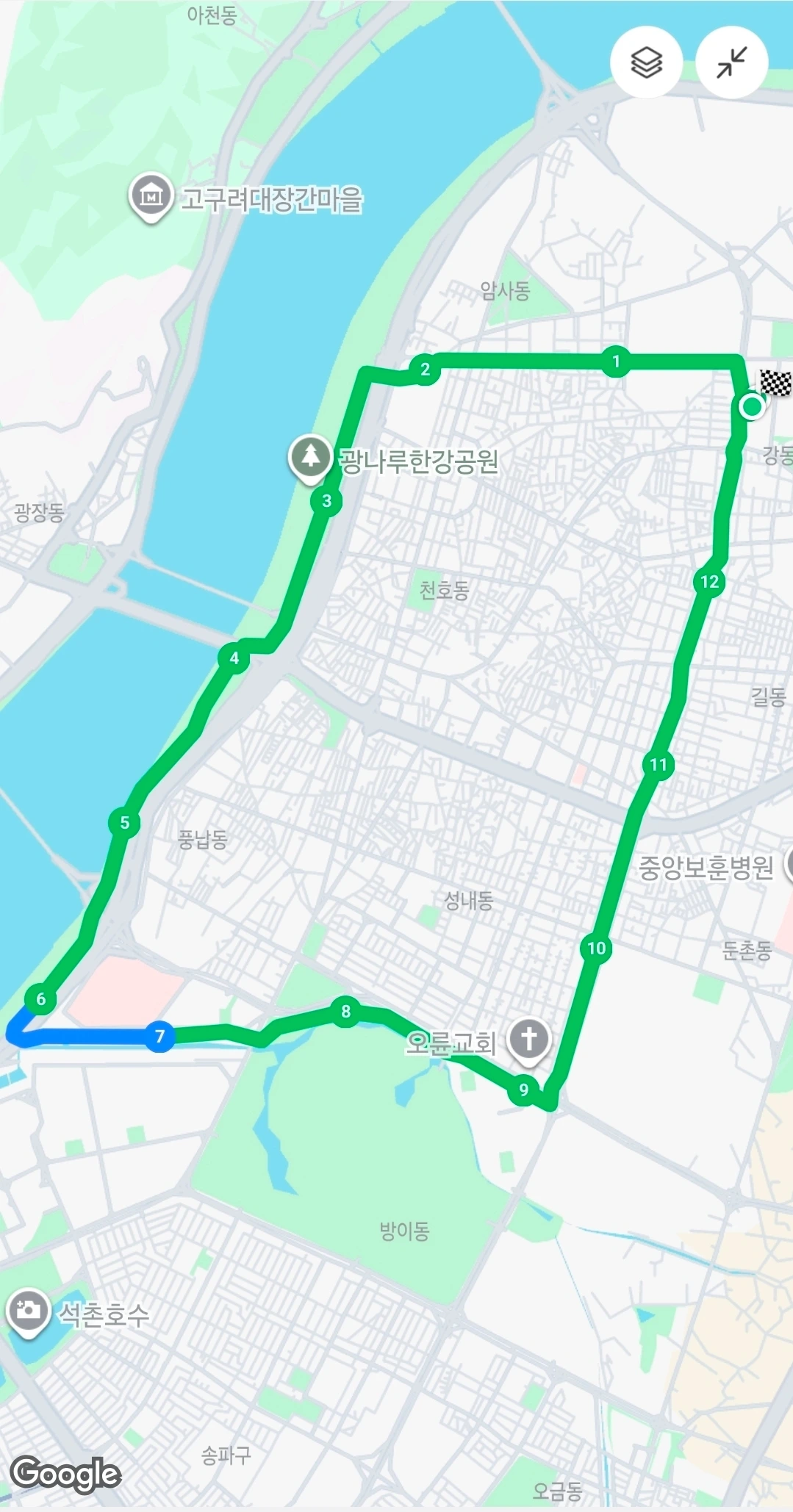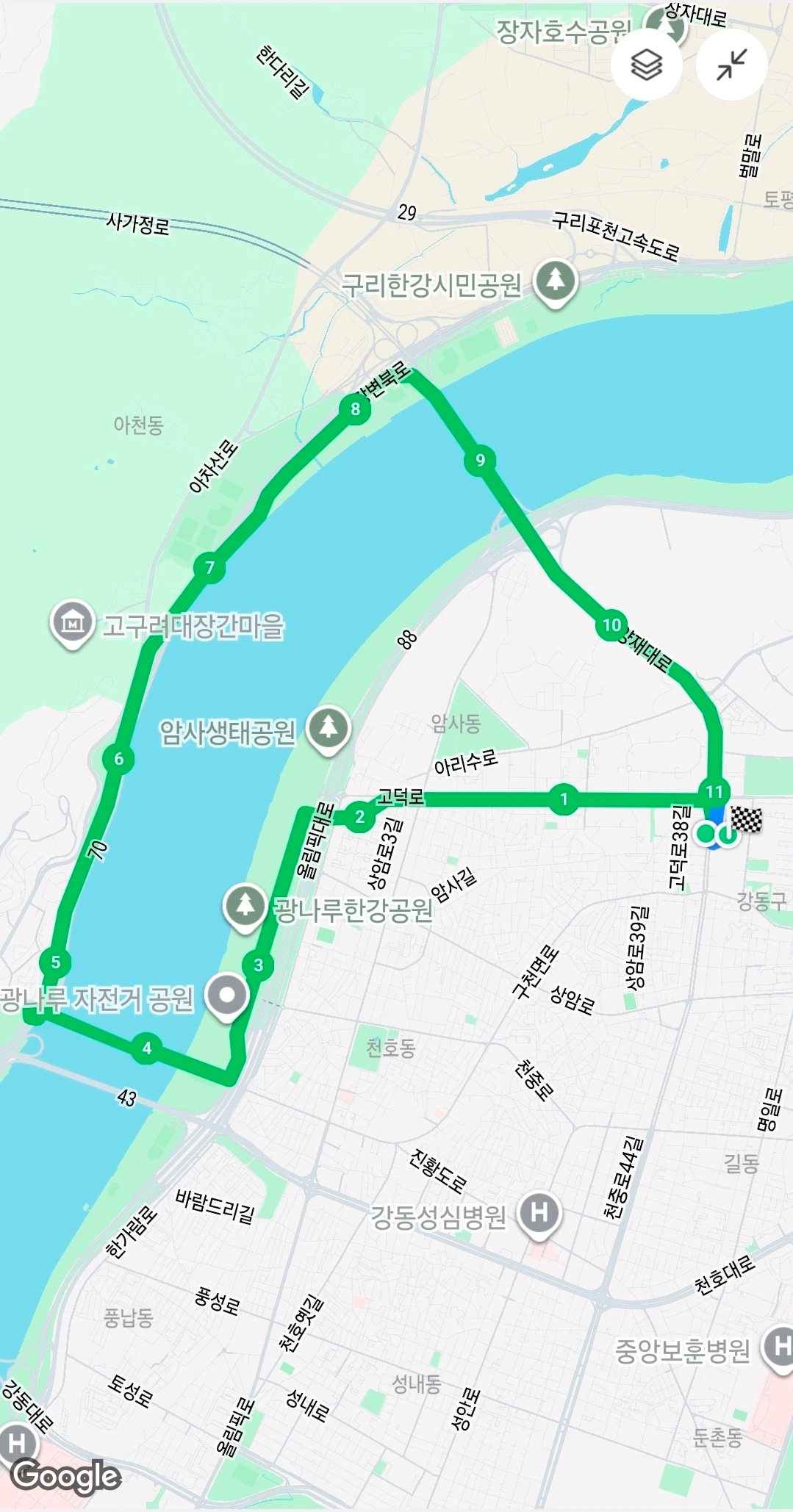 그랬는데 명일역으로 이사를 왔다. 새로운 동네로 이사 와서 새롭게 적응해야 할 것 중에 하나가 러닝 코스를 개발하는 것이었다.