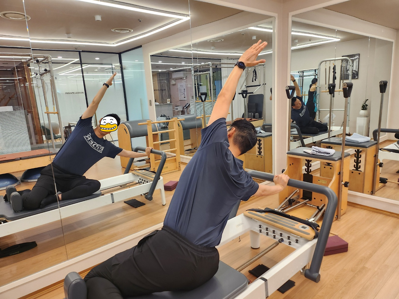 필라테스를 통해 내 몸의 사용법을 배울 수 있다. 필라테스 운동법의 창시자인 조셉 필레테스(남자)도 애당초 운동의 이름을 '컨트롤로지'로 불렀을 정도로 내 몸의 컨트롤을 중요시한다. 사진은 일산 라페스타에 Miom pilates에서 운동 중인 내 모습.