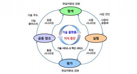 Living Lab은 MIT의 W. Mitchell 교수가 제시한 개념으로, 실험을 수행하는 공간에 최종 사용자가 참여해 새로운 혁신전략과 아이디어를 제시하는 혁신생태계를 말함.