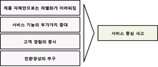 위와 같은 경쟁 환경의 변화로 인해 최근 제조업체들은 단순히 고객에게 제품을 판매하는 것에서 탈피하여 제품을 플랫폼으로 삼아 다양한 형태의 관련 서비스를 함께 제공하고 있으며 서비스를 통한 고객과의 상호작용은 기업이 고객의 요구사항을 효과적으로 파악해 고객에게 특화된 경험을 지속적으로 제공하는데 기여하고 있다.