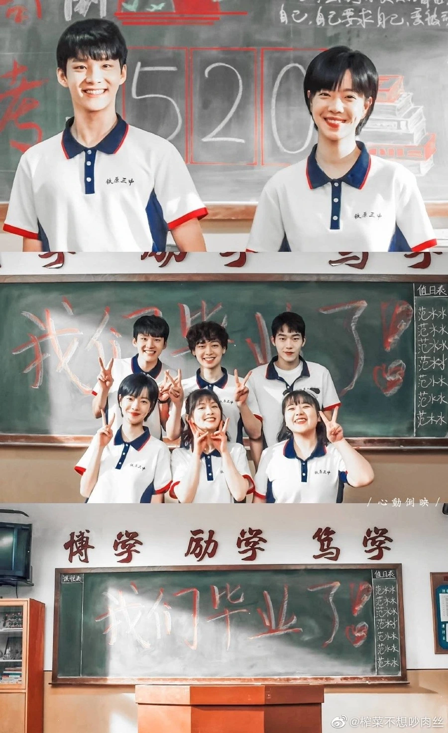 사실 이들은 한 가족이죠. 근데 이런 장면을 우린 본 적이 없고, 이들이 함께 쭉 살았다면이라 가정하고 상상해볼 수는 있어요. 그 상상 속에서 연출가능한 비슷한 상황을 대학생인 리칭퉁, 천진훠, 리진부가 보여주는거죠. 동아리방, 벽에 달린 달력, 왼쪽 밖에 없는 통로 등 한정된 공간은 집 같은 느낌을 주기도 합니다. 이게 제작진이 의도한 연출인지는 모르겠어요. 여튼 저들의 과거-현재-미래를 알고 있는 시청자에게는 여러 심상을 남기는 장면이었어요.