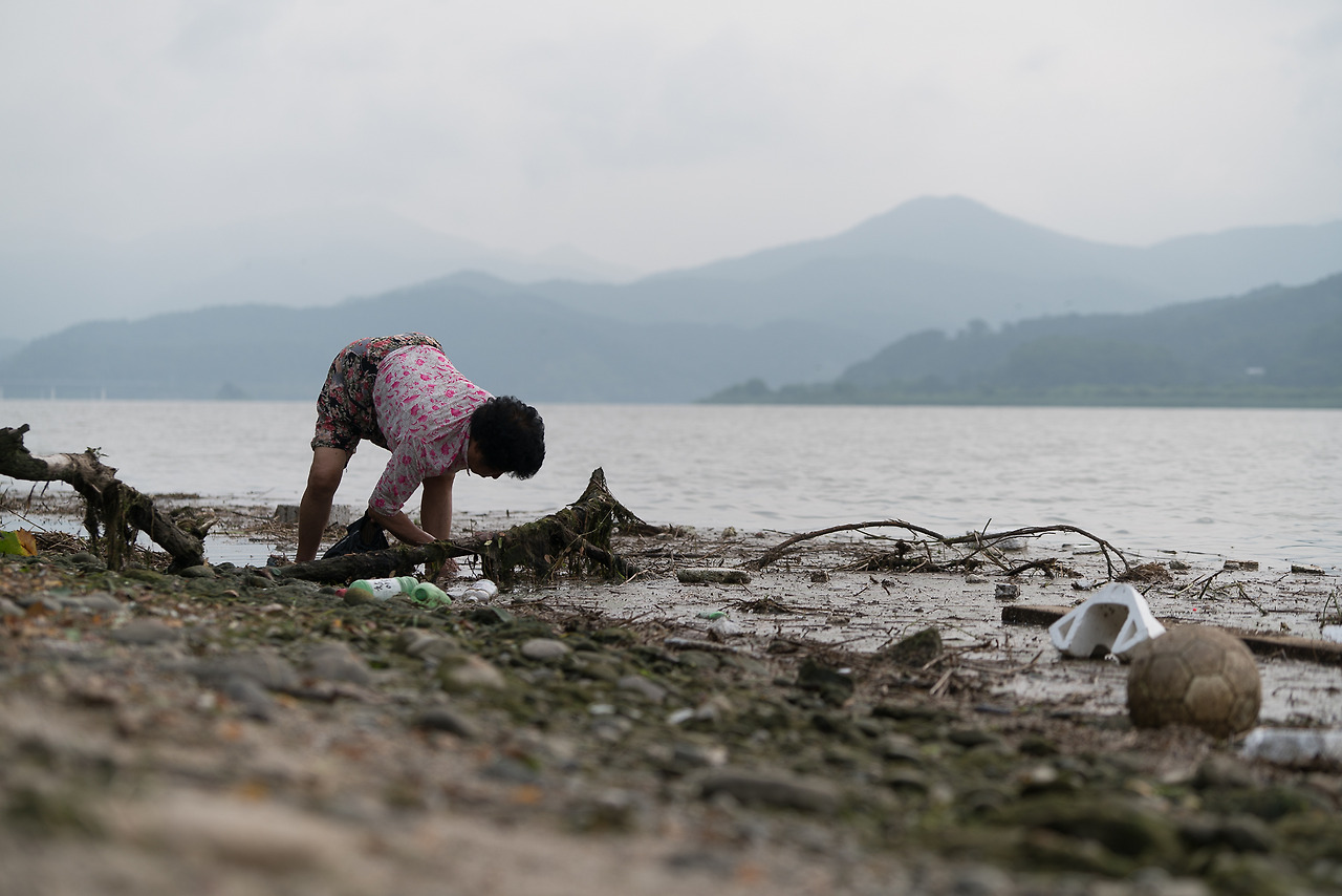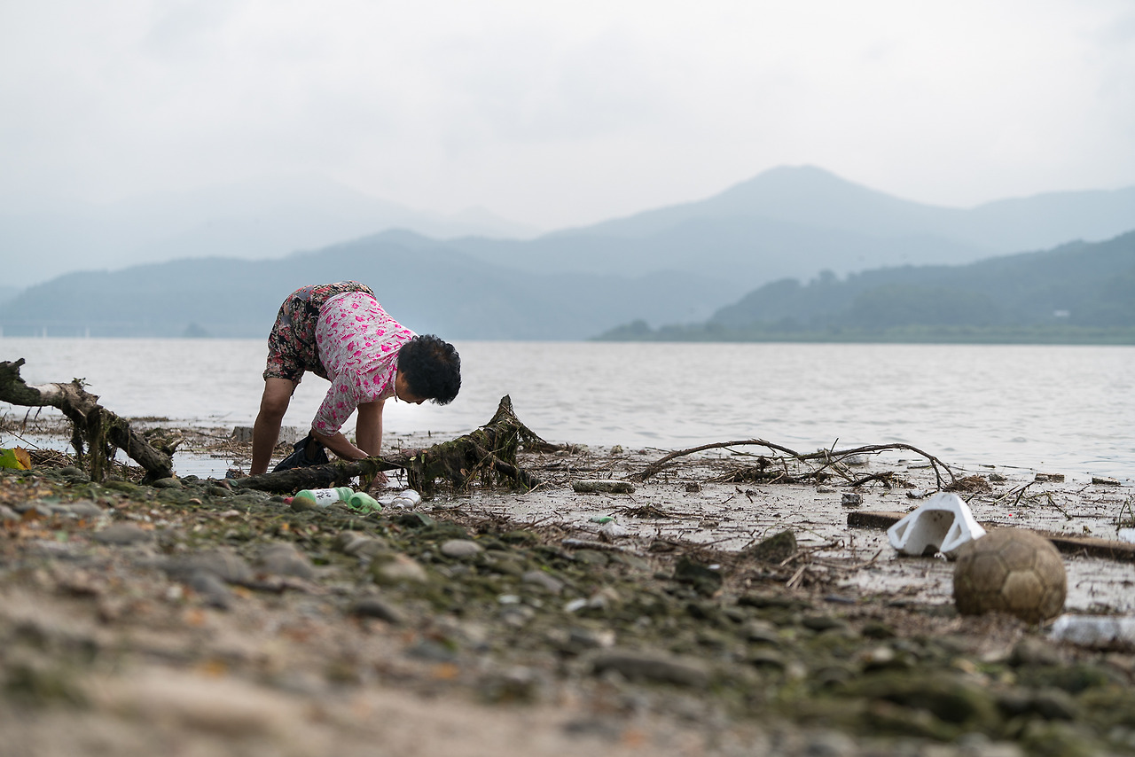 얼마전 양수리에서 새벽에 촬영을 하는 중 물가에서 뭔가 작업을 하시는 할머니 한분을 만났다. 검은 비닐봉지에 무엇을 계속 넣으시길래 여쭤보니 '소라'를 줍는다고 하셨다. 수질이 매우 나빠서 건강 상 걱정이 되기는 했지만 잘 씻고 익혀 먹으면 괜찮다고 하시는 것 보니, 자주 나오시는듯. 잠깐 양해를 구하고 사진을 몇 컷 담아보았다.