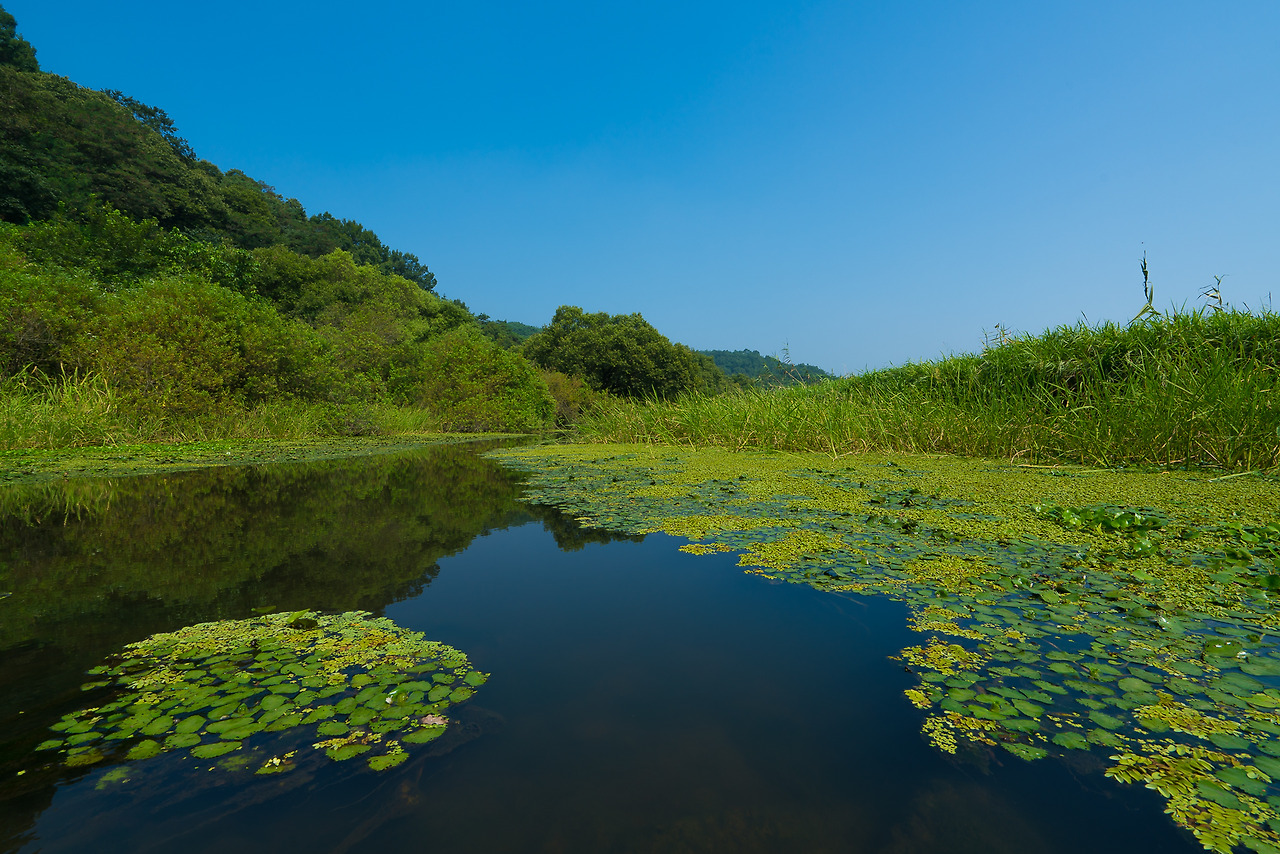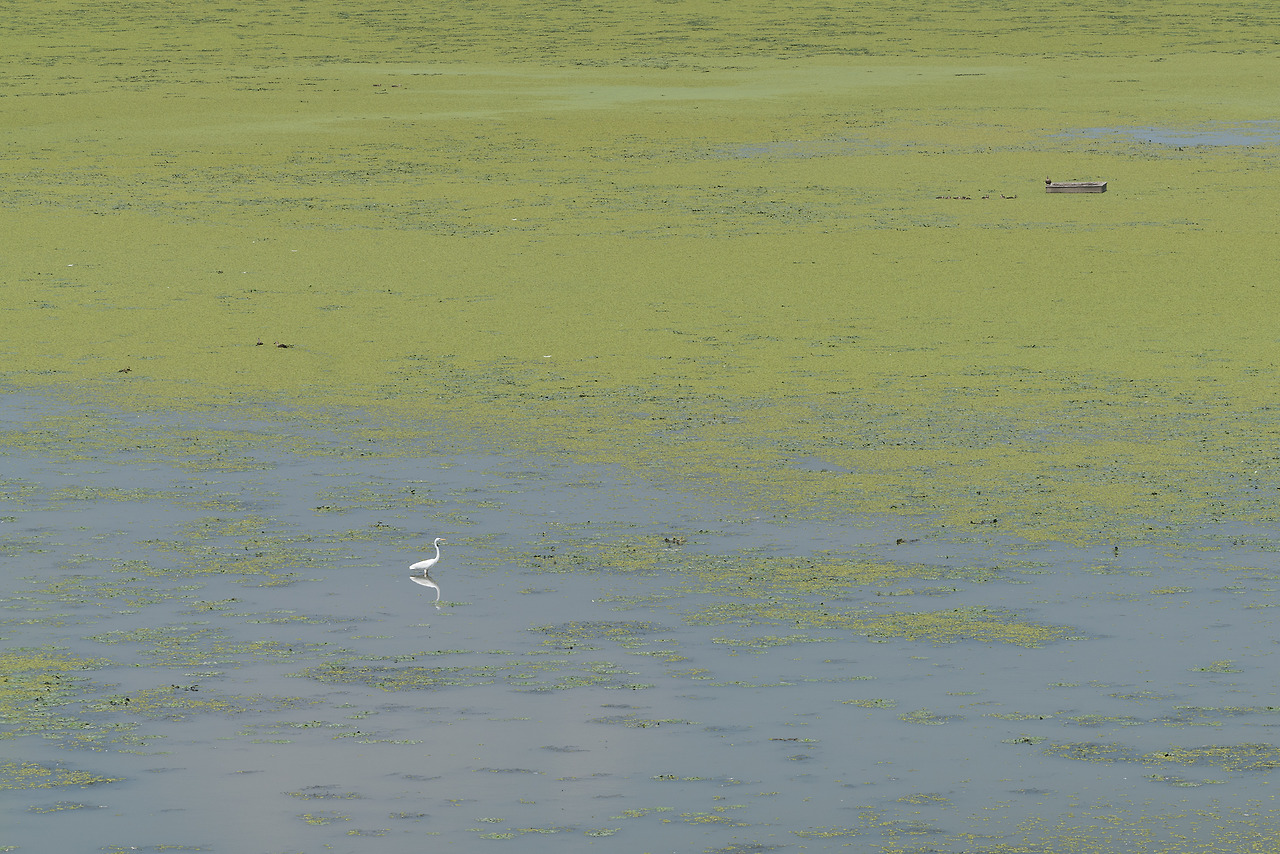 여름의 우포는 녹색의 향연이다. 처음 나의 눈에 들어온 수면의 녹색이 혹시 4대강 사업으로 오염된 것이 아닐까? 하는 불안감이 들었지만 가까이 다가가 여러 미세한 풀들과 개구리밥임을 확인하고 안심을 했다. 사진으로 보기에는 깨끗하거나 아름답다는 말을 전하기에는 다소 부족하지만 생동감이 넘치는 느낌이다. 그리고 같은 물이라고 할 지라도 강, 저수지나 강의 모습과 다른 차이점을 만들어 주는 요소 이기도 하다.