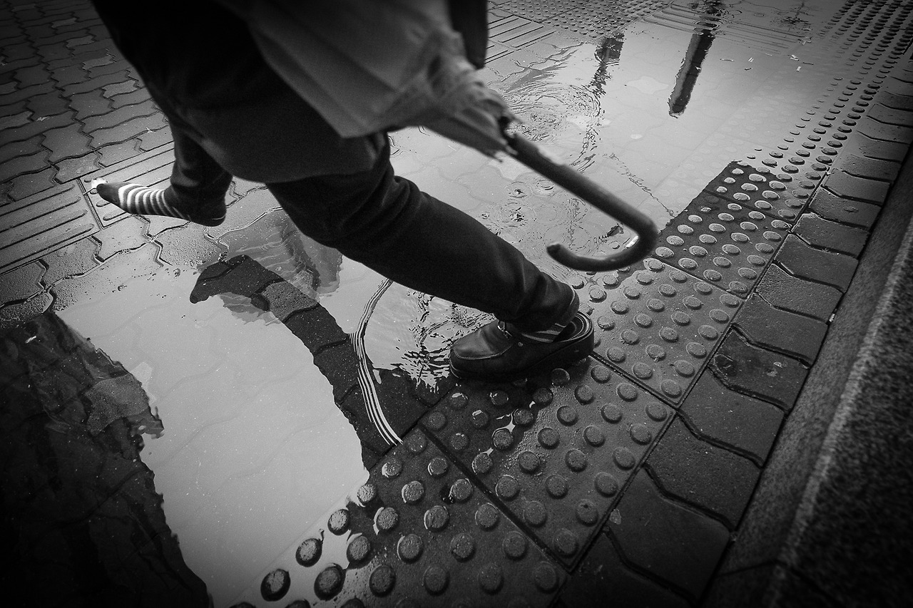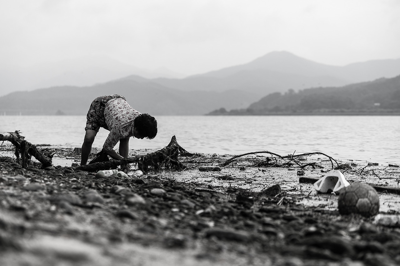 작년 가을 서울역 근방에서 촬영을 하는 중 폭우가 쏟아져 지하 통로에 쭈그려 앉아 스쳐가는 사람들을 찍고 있었다. 아주머니께서 물을 넘어 점프하는 모습이 뷰파인더에 들어왔고 그분의 오른쪽 신발이 벗겨지는 순간을 포착했다. 너무 재미있어서 수상한 사진과는 다른 스타일이지만 꼭 소개하고 싶다. 페이스북에서 ‘앙리 카르티에 브레송’의 사진 같다는 말도 안 되는 찬사를 받기도 했다. (웃음)