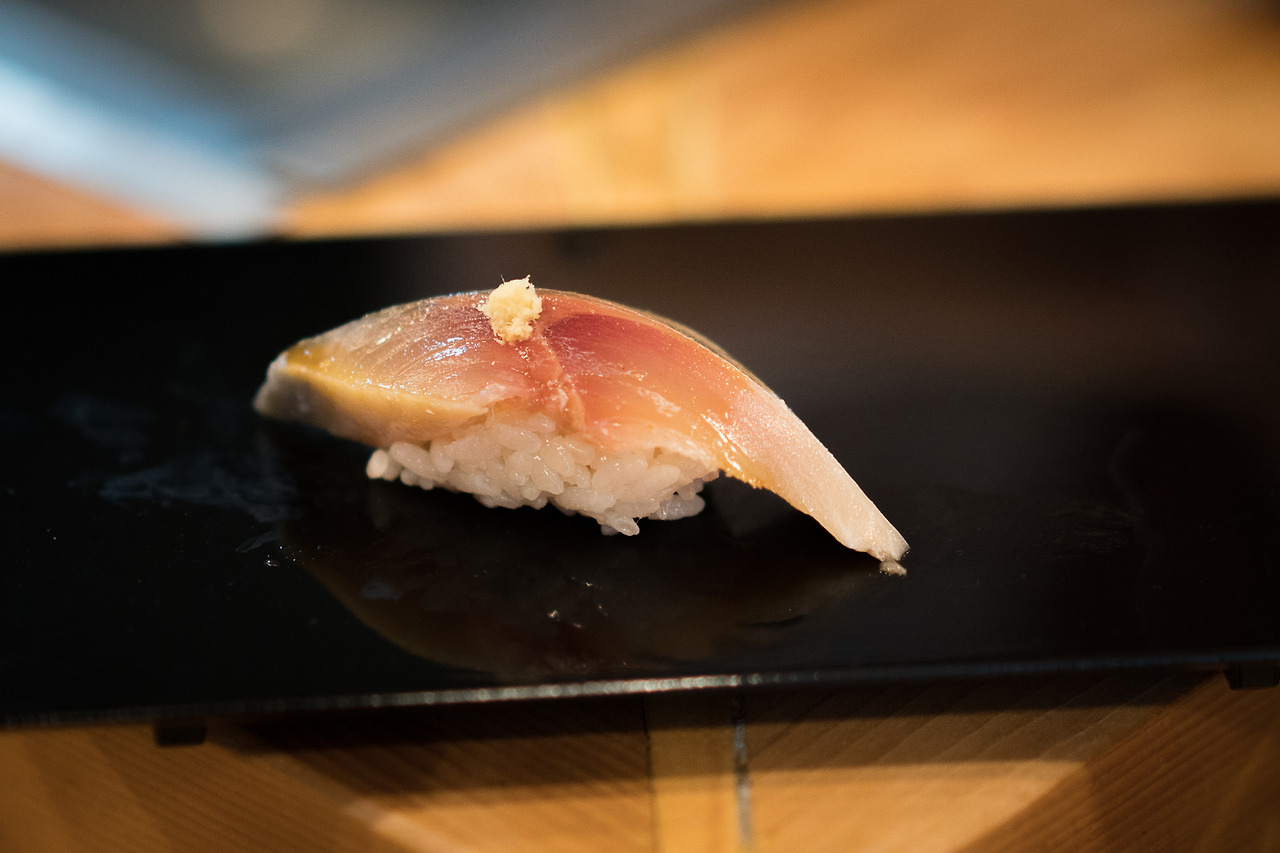 고등어 초밥 위에 올려진 작은 생강이 시각적 디테일을 올려주고 식감과 풍미를 더한다.
