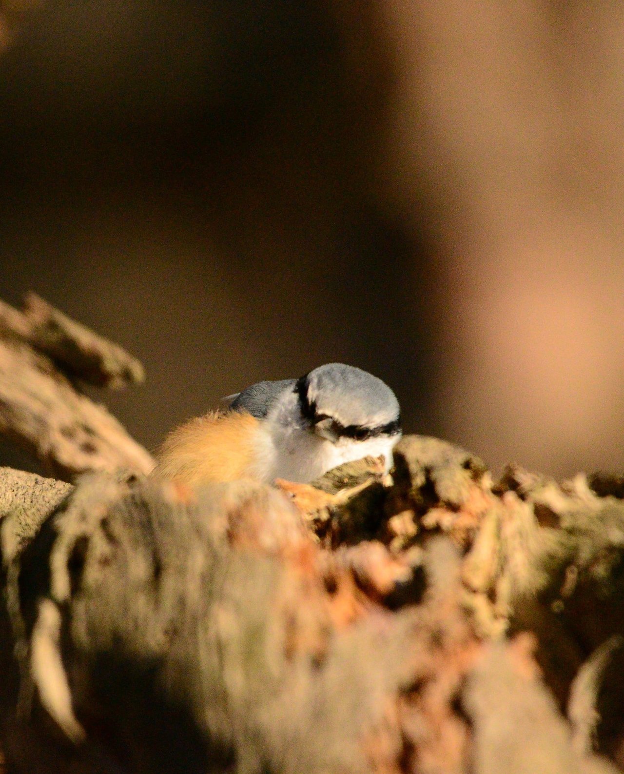 예상했던 대로 바깥은 엄청 추웠다. 추운 날씨 때문일까, 한참을 걸어도 새들은 보이지 않았다. 그러다 갑자기 큰아이가 카메라를 겨눈다. 소나무에 동고비가 있단다. 자세히 보니 나무 부스러기가 떨어지고 있고 그 위에 작은 새 한 녀석이 보인다. 이 줄기에서 저 줄기로 건너뛰는 것은 물론, 줄기를 이리 돌았다가 저리 돌았다가, 올라갔다가 내려갔다가, 거꾸로 섰다가 똑바로 섰다가, 부산스러워 정신이 하나도 없다. 이 녀석은 나무를 자유자재로 잘 타는데, 나무 껍데기를 뜯어 그 안에 있는 벌레를 먹는다고 한다. 군데군데 소나무 가지의 껍데기가 벗겨져 빨갛게 드러난 부분이 바로 이 녀석들의 소행이란다. 몸집은 참새 만한 것이, 소나무에 해를 주려는 의도는 아니겠지만, 결국에는 저 두꺼운 껍데기를 벗겨버린다니, 먹고 살려는 그 의지가 대단하다. 쓸데없는 감탄을 하는 사이, 동고비는 나무 타기 쇼를 조금 보여 주다가 이내 자취를 감추었다.